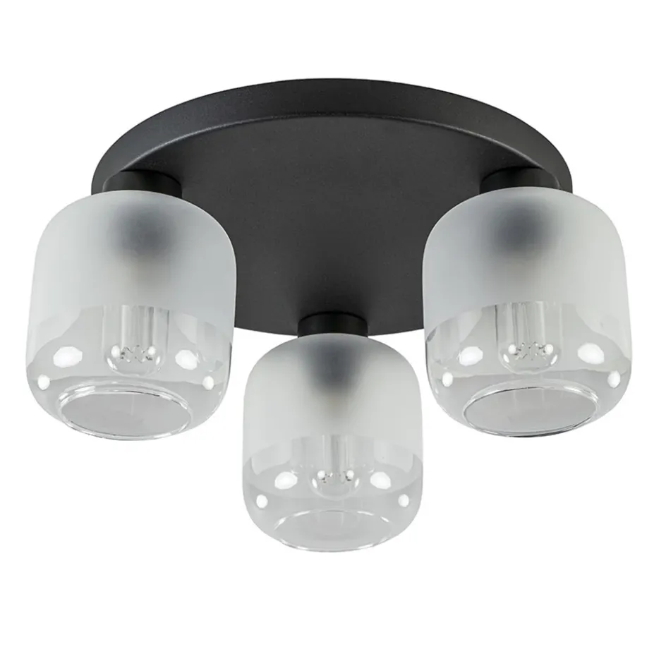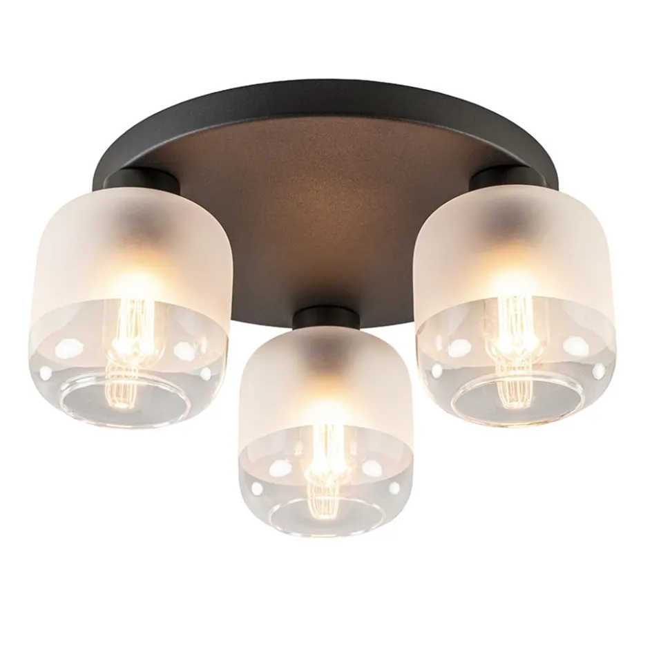 3-Lichts ronde plafondlamp zwart met helder/mat glas>Straluma