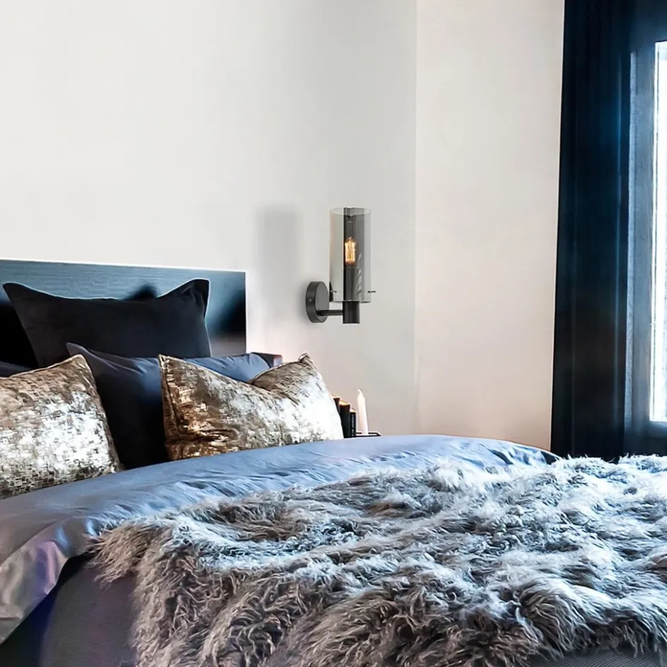 Een sfeervolle luxe wandlamp. Deze wandlamp past mooi in uw hal of slaapkamer. De wandlamp heeft een moderne, chique uitstraling. De wandlamp heeft cilindervormig smoke glas, dit geeft de wandlamp een extra luxe uitstraling die mooi te combineren is in een strak klassiek, modern of chique interieur. Een mooie sfeervolle toevoeging aan uw interieur. De wandlamp is niet voorzien van een snoer!