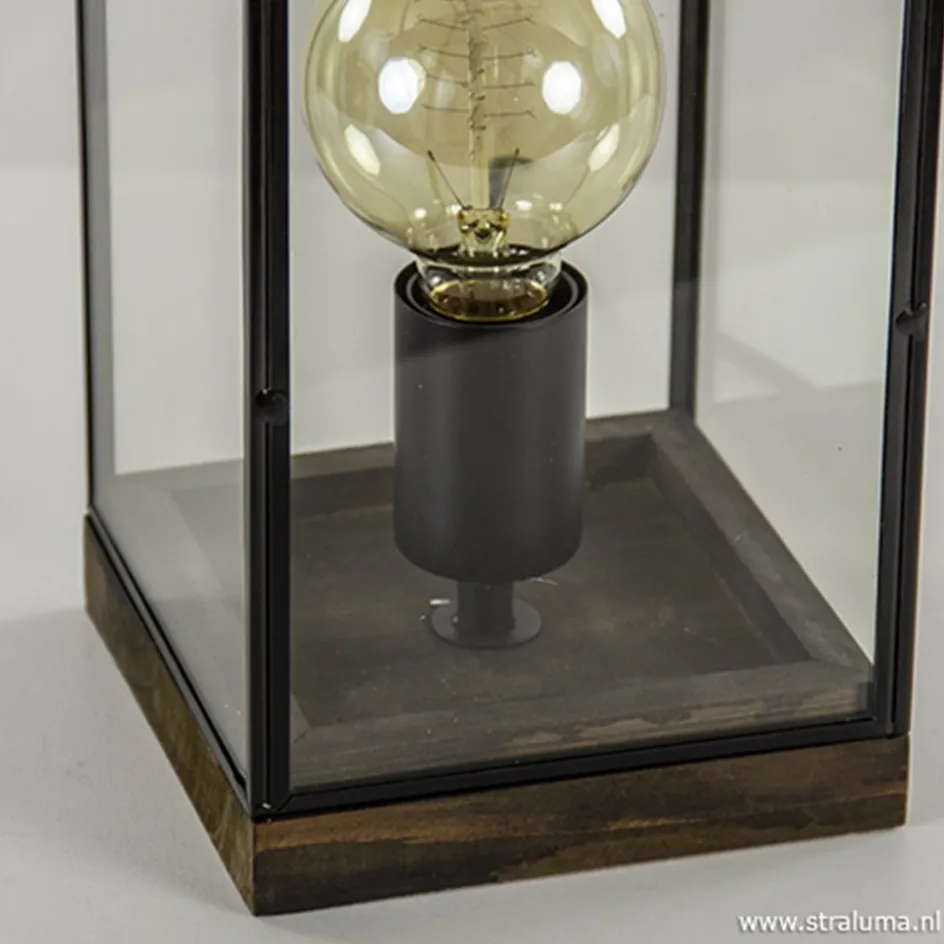 Glazen tafellamp Askjer hout met zwart>Straluma Online