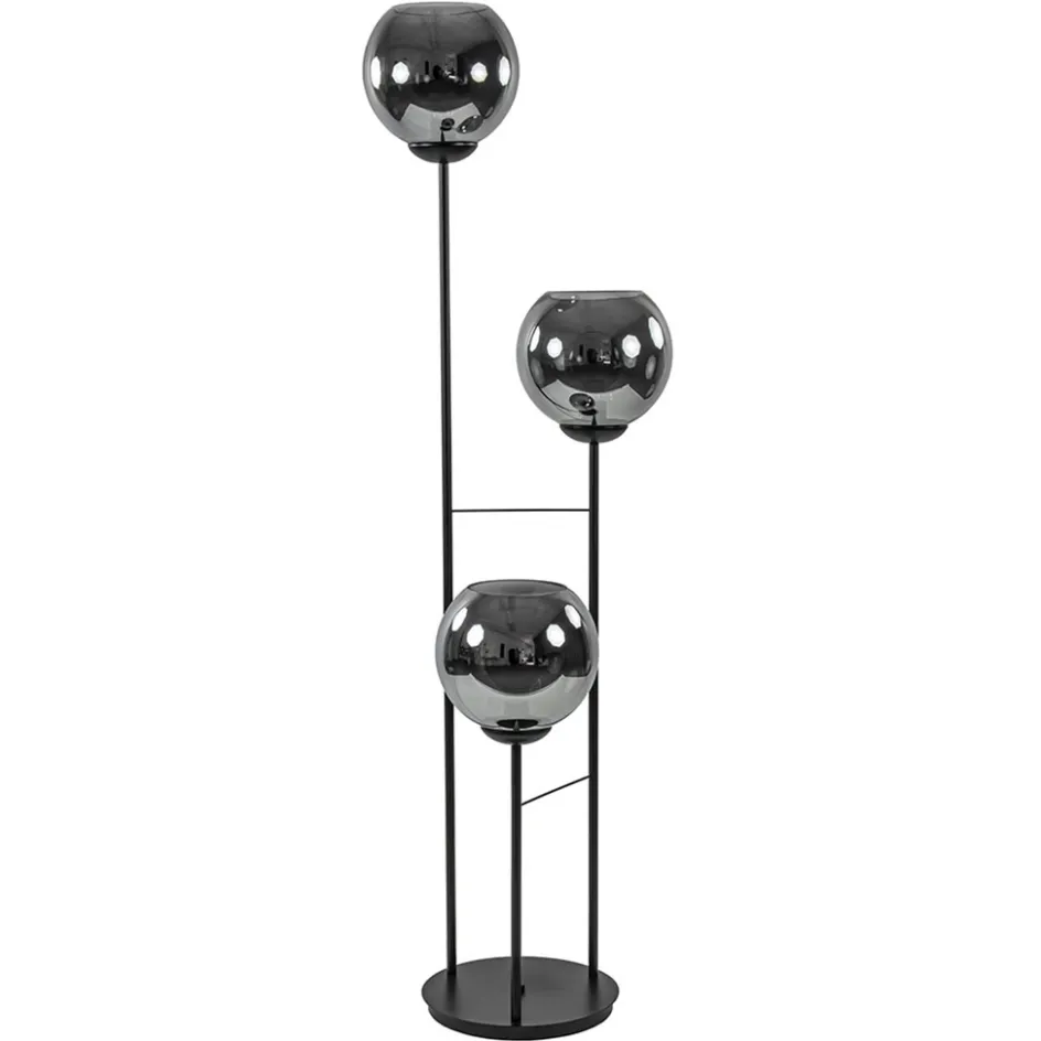 Hotel chique 3-lichts vloerlamp zwart met smoke/titanium glas>Straluma Online