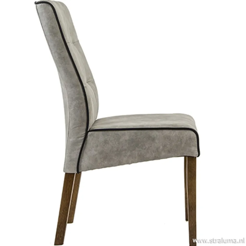 Deze eetkamerstoel is een prachtig meubelstuk voor in uw klassieke of landelijke interieur. Door de hoge rug heeft de eettafelstoel een chique uitstraling. De stoel is uitgevoerd in stof en voorzien van decoratieve stiknaden op de rugleuning en een zwarte bies als afwerking. De donkergekleurde houten stoelpoten geven deze stoel een tijdloze elegantie. Combineer deze stoelen met een landelijke eettafel voor een evenwichtig en stijlvol geheel, zodat u lekker kan genieten van een heerlijke avond aan tafel.
