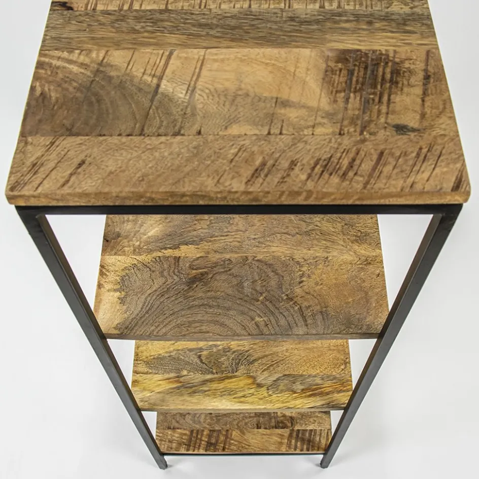 Dit kastje is een leuke toevoeging aan het interieur. Het vierkante kastje bestaat uit een zwart metalen frame met mango houten planken. Deze combinatie geeft het kastje een stoere en robuuste look die mooi is toe te passen in diverse woonstijlen. Het kastje is in 3 maten verkrijgbaar en zijn ook leuk als set te combineren.