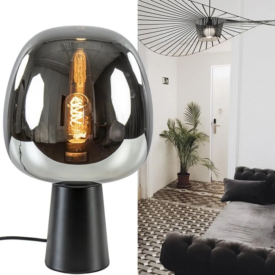 Mat zwarte tafellamp Mayson met smoke glazen kap>Straluma Hot