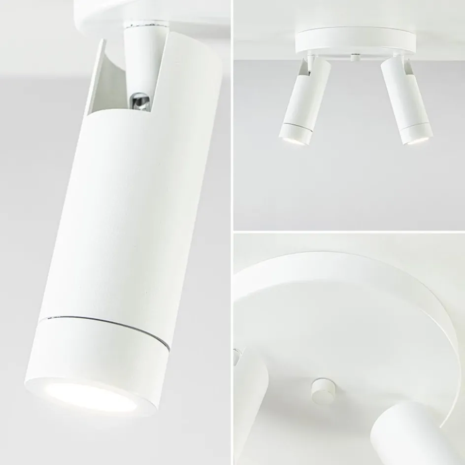 Een moderne ronde 2-lichts plafondspot met strakke vormgeving. Deze 2-lichts plafondspot is gemaakt van mat wit metaal. De spotjes zijn los van elkaar verstelbaar. Ideaal om meerdere aspecten van een ruimte tegelijk uit te lichten. De lamp past goed in een hal of de slaapkamer. Het leuke aan deze spot is dat hij wordt geleverd met zowel een mat witte als een goudkleurige fitting ring. U kunt er zelfs voor kiezen de fitting ring weg te laten en de 2-lichts spot af te maken met grotere lichtbronnen. Zo kiest u zelf welke look u wilt.