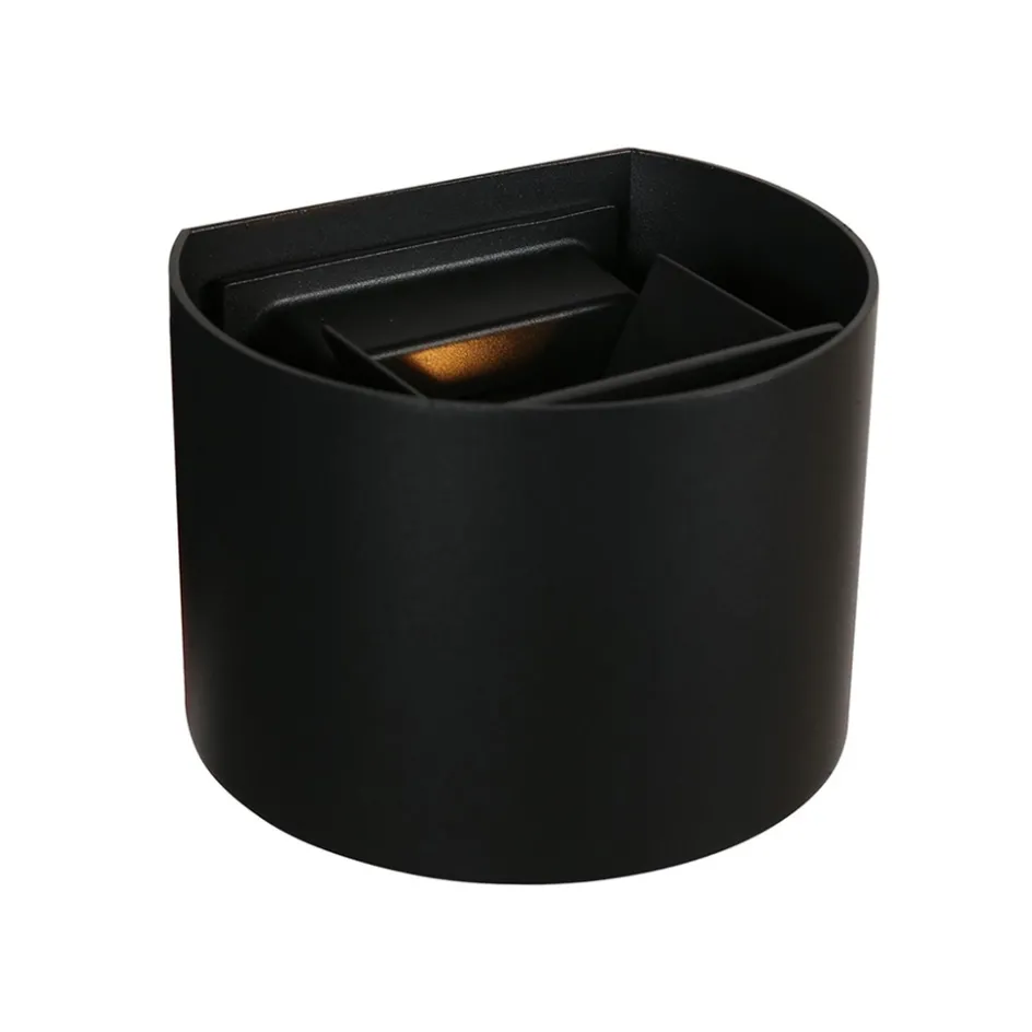 Deze kleine krachtpatser zorgt voor extra sfeer en gezelligheid in uw tuin. De kleine wandlamp is gemaakt van metaal en uitgevoerd in het mat zwart. De ronde wandlamp bestaat uit twee delen, de binnen- en de buitenzijde. De buitenzijde is een losse kap die u gemakkelijk over de binnenzijde heen schuift. De binnenzijde is voorzien van de lichtbron. Dit zijn twee LED modules die samen de verlichting verzorgen. De up+down lighter kunt u zelf instellen door de klepjes aan de binnenzijde te buigen. Zo bepaald u zelf aan welke zijde er meer licht moet worden verspreid. De wandlamp is IP54 goedgekeurd en kan dus wel een buitje hebben. Ideaal voor aan de schuur of schutting. De wandlamp is voor extra gemak voorzien van een light sensitive sensor, oftwel schemersensor.