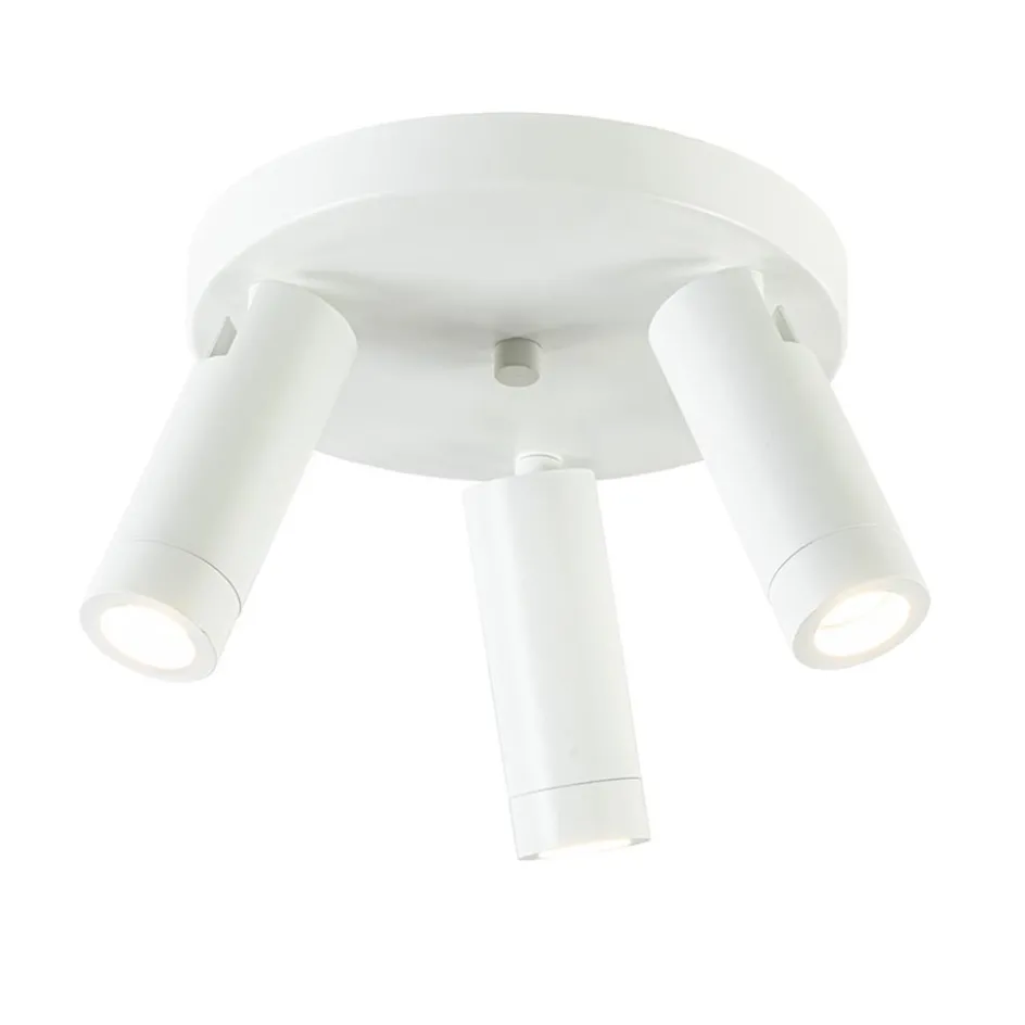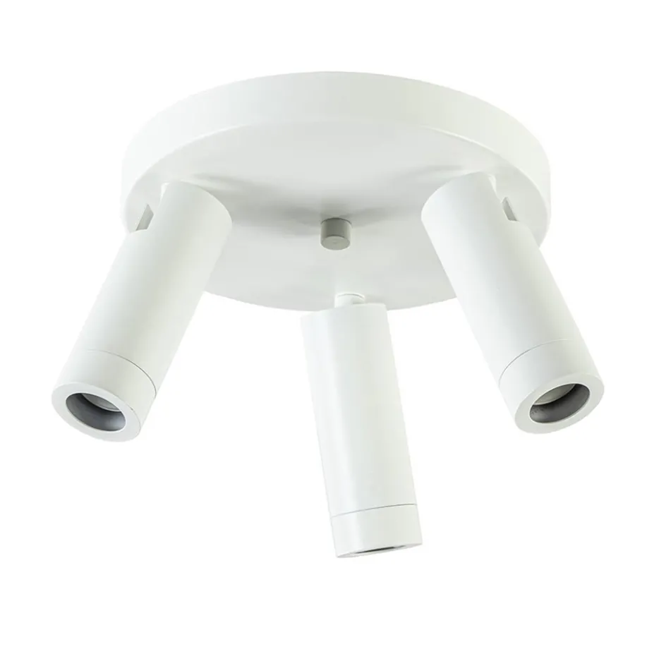 Een moderne ronde 3-lichts plafondspot met strakke vormgeving. Deze 3-lichts plafondspot is gemaakt van mat wit metaal. De spotjes zijn los van elkaar verstelbaar. Ideaal om meerdere aspecten van een ruimte tegelijk uit te lichten. De lamp past goed in een hal of de slaapkamer. Het leuke aan deze spot is dat hij wordt geleverd met zowel een mat witte als een goudkleurige fitting ring. U kunt er zelfs voor kiezen de fitting ring weg te laten en de 2-lichts spot af te maken met grotere lichtbronnen. Zo kiest u zelf welke look u wilt.