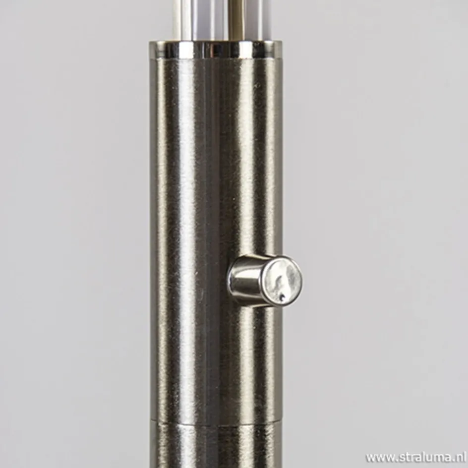 Deze moderne vloerlamp is weer eens iets heel anders. Het strakke design van de lamp geeft een design karakter aan het interieur. De drie LED strips zorgen voor een hoop licht, maar zijn gemakkelijk te dimmen met de pushdimmer op de stang. Deze lamp is uitgevoerd in mat nikkel om het moderne gevoel extra te versterken. De lamp wordt geleverd inclusief transparant snoer en door zijn LED verlichting is de lamp energiezuinig.