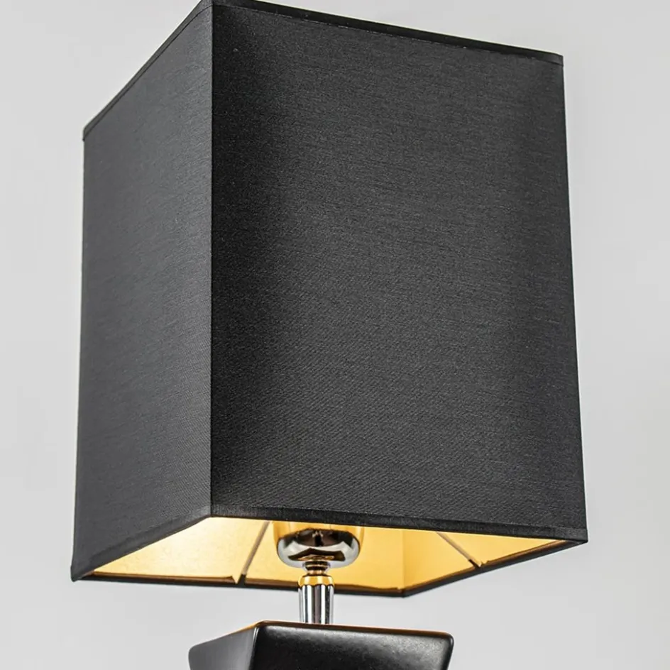 Deze chique en stijlvolle tafellamp maakt het interieur helemaal af. Passend in diverse woonstijlen is de lamp een mooie eyecatcher op een bijzettafel, sidetable of dressoir. Het gedraaide effect in de voet geeft de lamp een speelse en tegelijk luxe uitstraling die compleet wordt gemaakt door de zwarte vierkante kap. De binnenzijde van de kap is goud voor een extra glamoureuse look. De voet van de lamp is gemaakt van keramiek en mat zwart afgewerkt. De schemerlamp is voorzien van een zwart snoer met een lengte van 160 cm en een schakelaar op 45 cm. De lichtbron is exclusief.