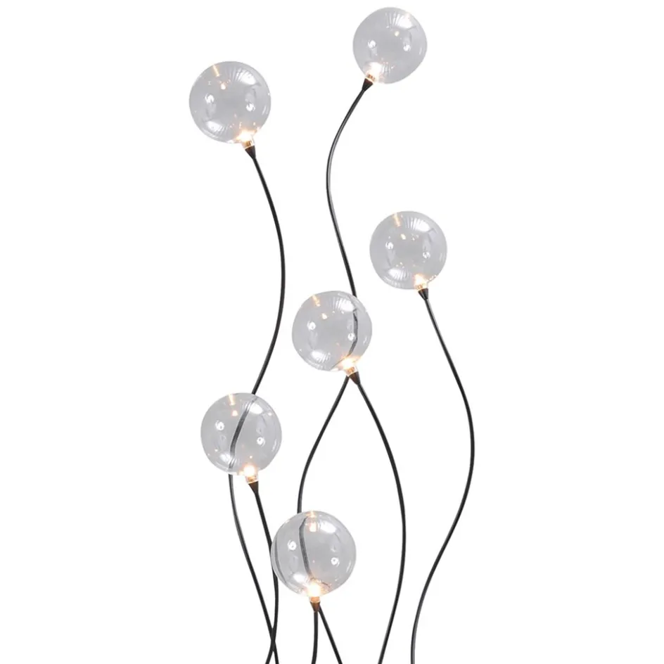 Sierlijk en functioneel. Deze LED vloerlamp is een mooie toevoeging aan het interieur. De vloerlamp is gemaakt van metaal en voorzien van een zwarte finish. Dit geeft de staande lamp een moderne – strak klassieke look. Het armatuur heeft sierlijke armen die aan de uiteinden zijn voorzien van een LED unit en een helder glazen bol. Het LED is dimbaar middels de dimmer in het zwarte snoer. Door erop te drukken gaat de lamp aan of uit en, zodra u links of rechts langer ingedrukt houdt dimt u de lamp naar wens. De helder glazen bollen zijn mooi verdeeld in hoogte waardoor er een leuk speels effect ontstaat. De sierlijke LED vloerlamp geeft met 2200-2700 Kelvin sfeervol warm wit licht.