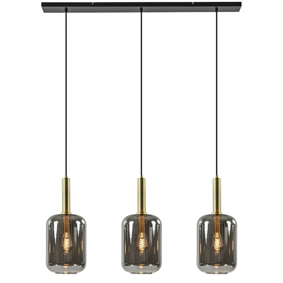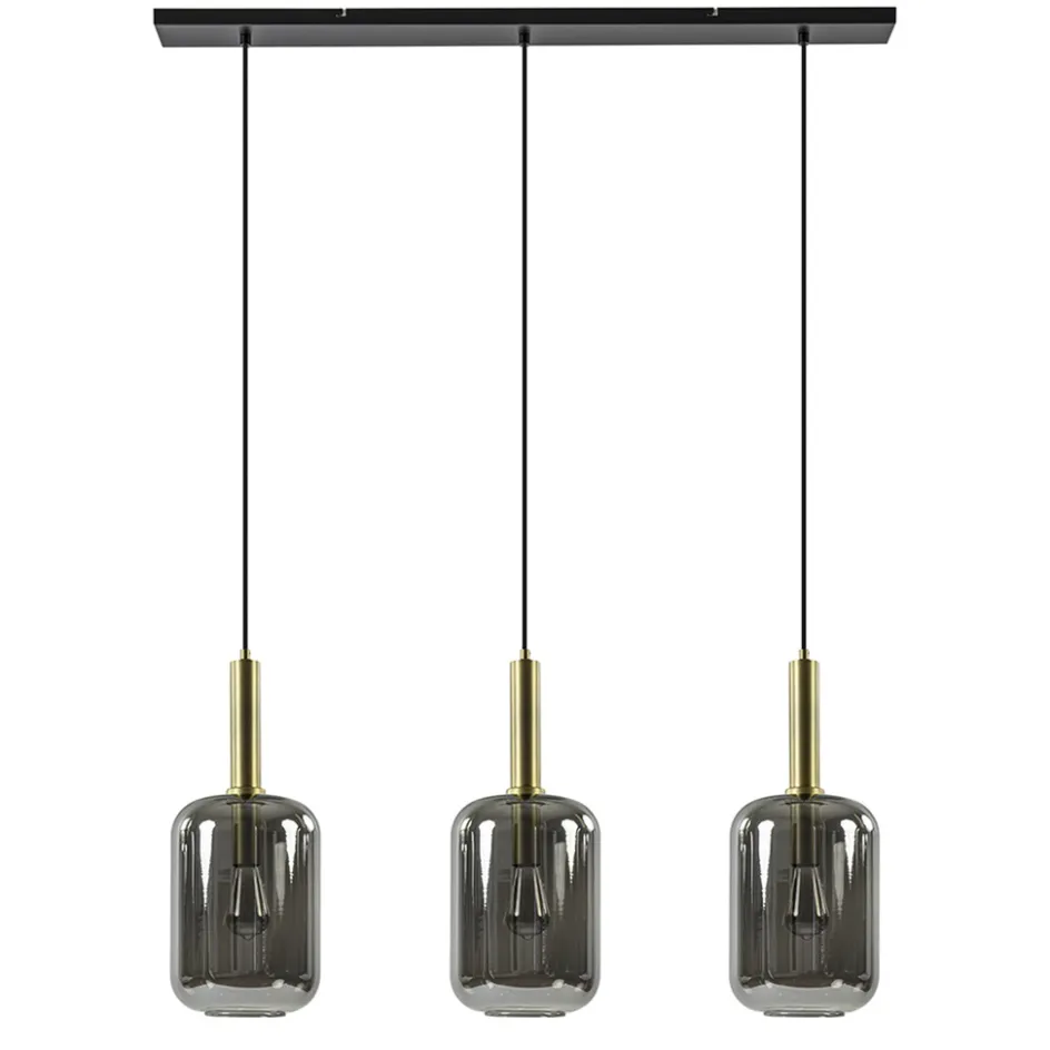 3-Lichts hanglamp Lekar antiek brons met smoke glas>Straluma
