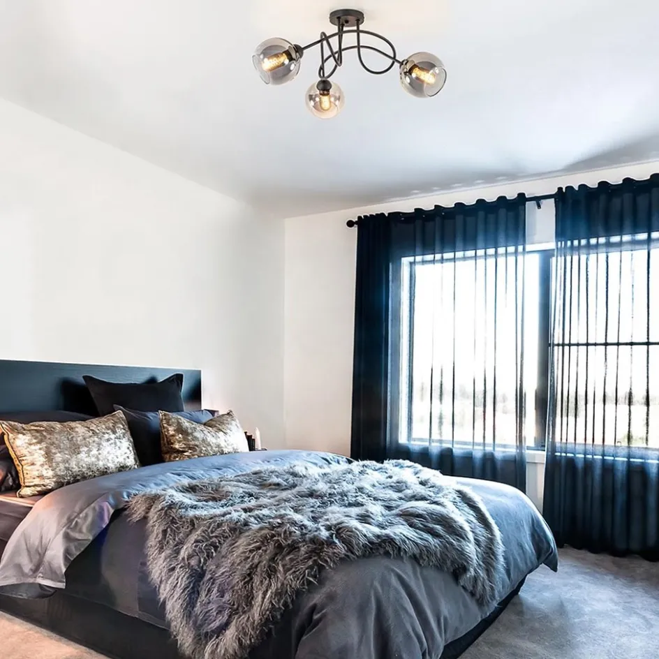 3-Lichts plafondlamp zwart met smoke glazen bollen>Straluma Discount
