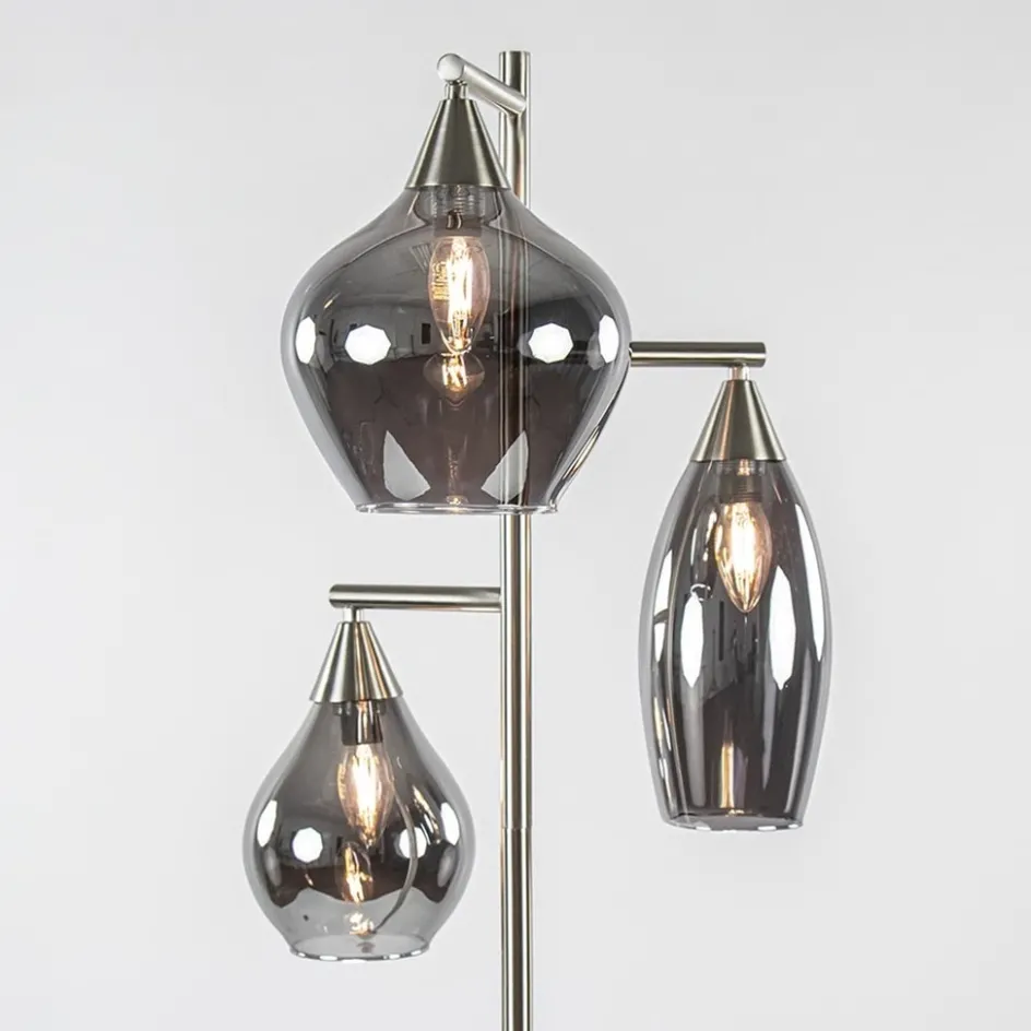 3-Lichts vloerlamp nikkel met smoke glazen kappen dimbaar>Straluma Hot