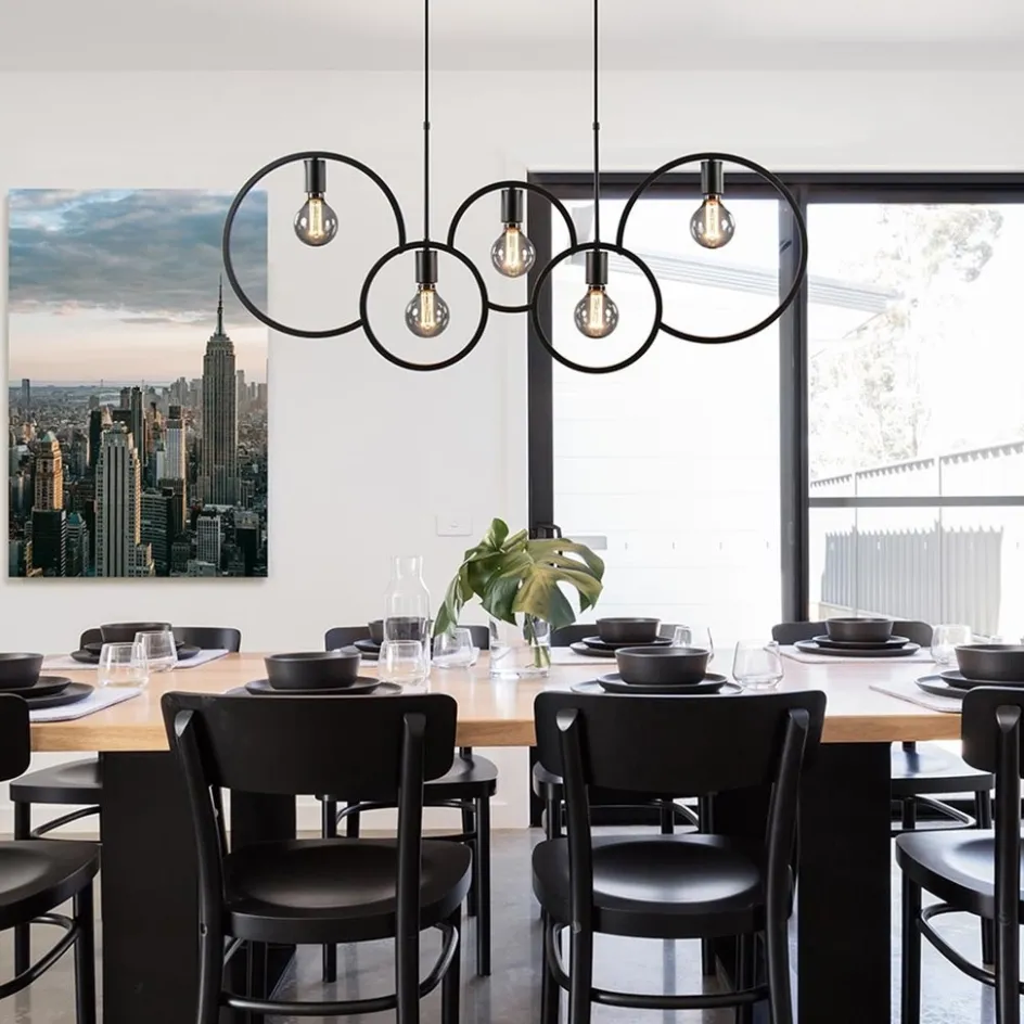 5-Lichts eettafelhanglamp ringen mat zwart>Straluma Online