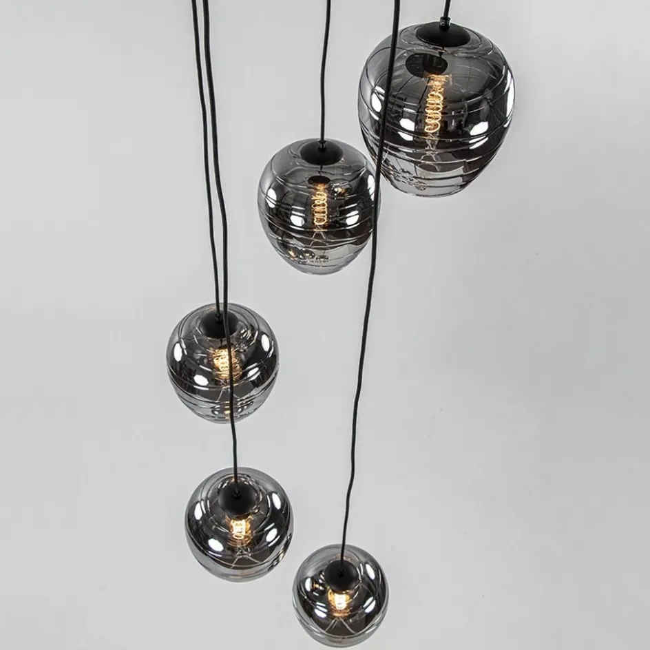 5-Lichts ronde hanglamp zwart met smokey glas>Straluma Best