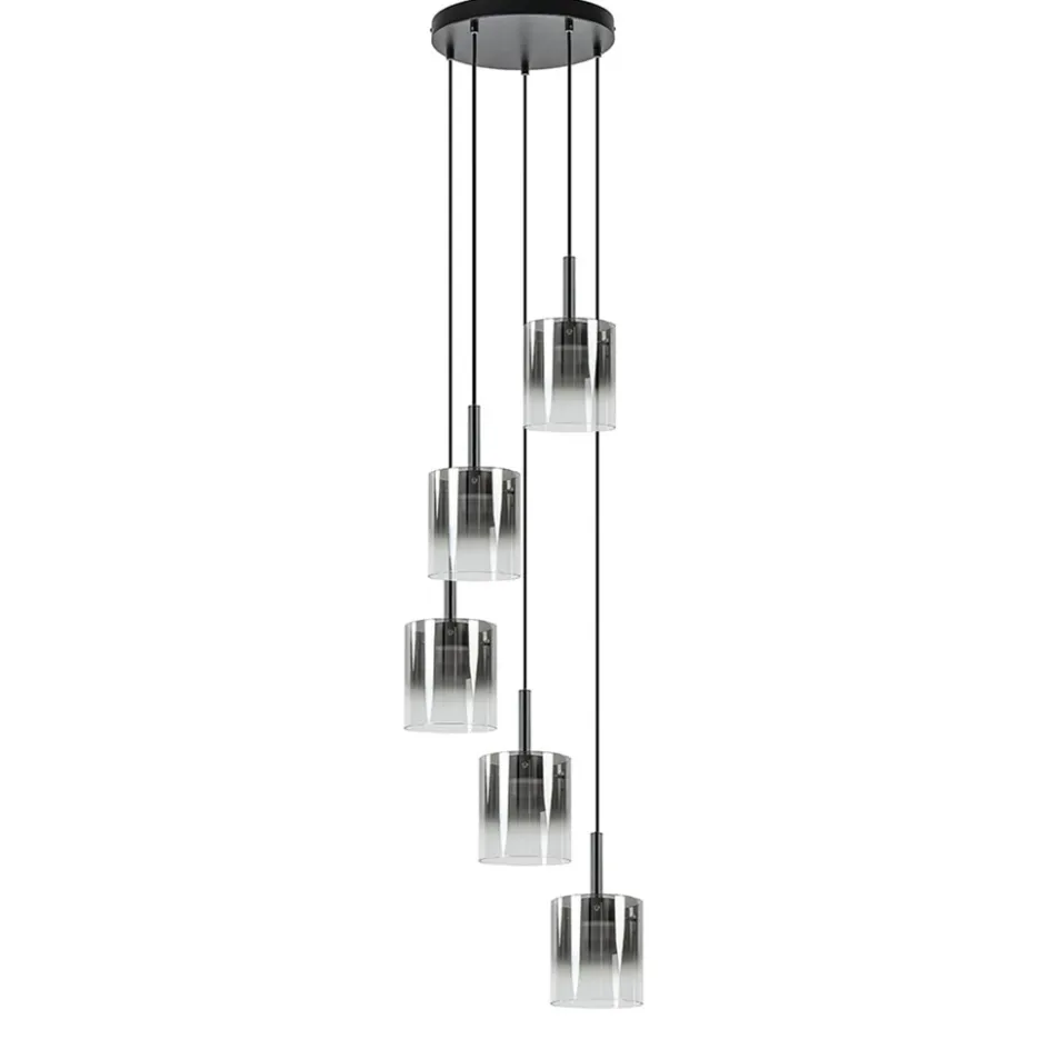 5-Lichts ronde hanglamp zwart met titanium/helder glas>Straluma Hot