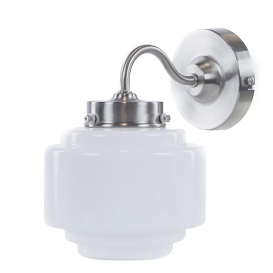 Art Deco wandlamp staal met wit glas>Straluma Online