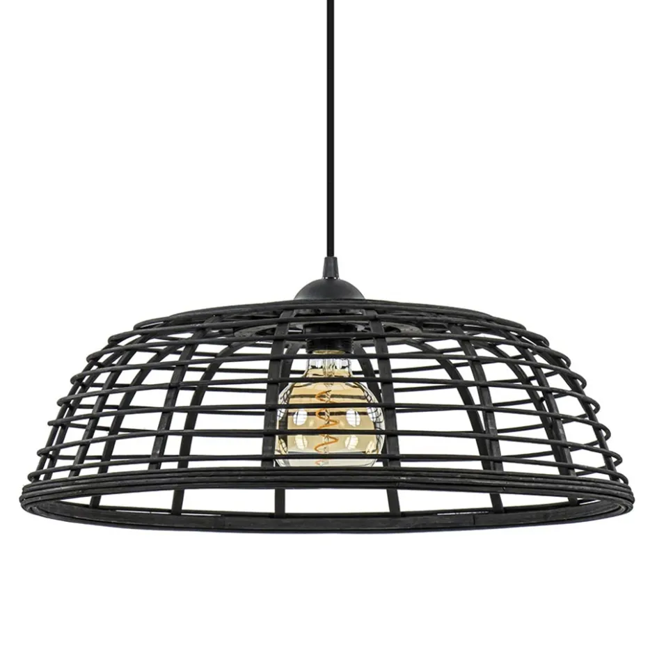 Deze stoer hanglamp is gemaakt van hernieuwbare grondstoffen zoals bamboe en pitriet. Dat maakt deze zwarte hanglamp niet alleen erg mooi, maar ook nog eens milieuvriendelijk. De spiraalsgewijs geplaatste pitriet is vastgezet op het bamboe frame. De lamp is door zijn vorm en kleur perfect voor het landelijke, botanische en Scandinavische interieur. Door de open structuur van de hanglamp past hier het best een decoratieve lichtbron in.