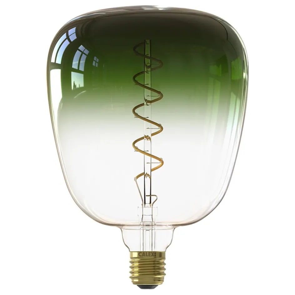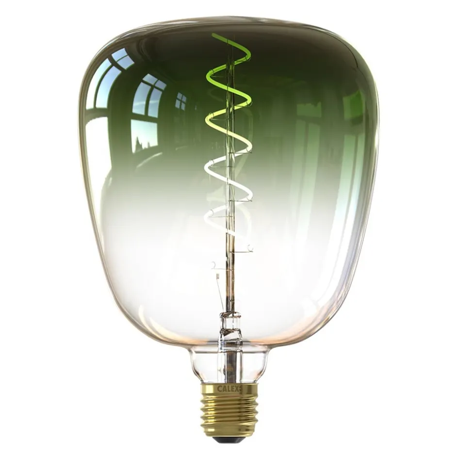 Deze moderne LED lamp maakt uw interieur helemaal af. De ovale bol heeft een groen verloop in het glas wat de lamp een stoere moderne look geeft. De LED lamp is dimbaar en geeft met 1800 Kelvin een extra warm witte verlichting. Mooi in een tafelarmatuur of gegroepeerd met een aantal anderen in een hanglamp.