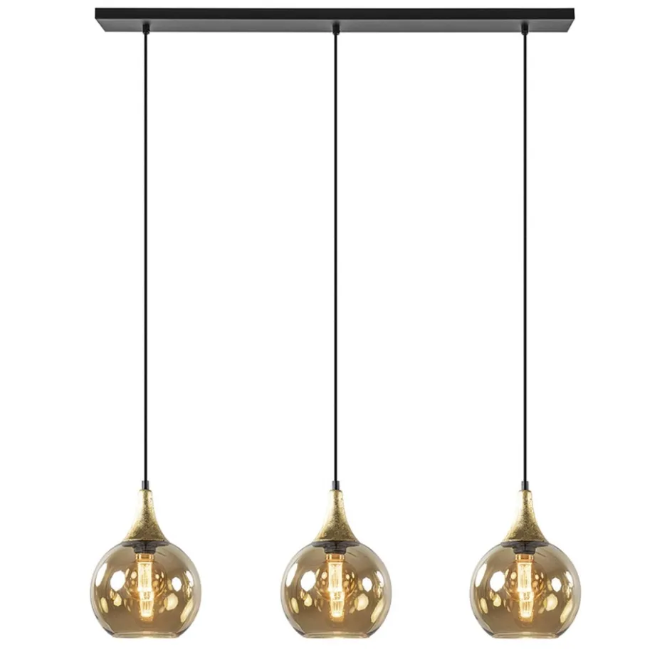 Chique 3-lichts hanglamp zwart/goud met amber glas>Straluma Best