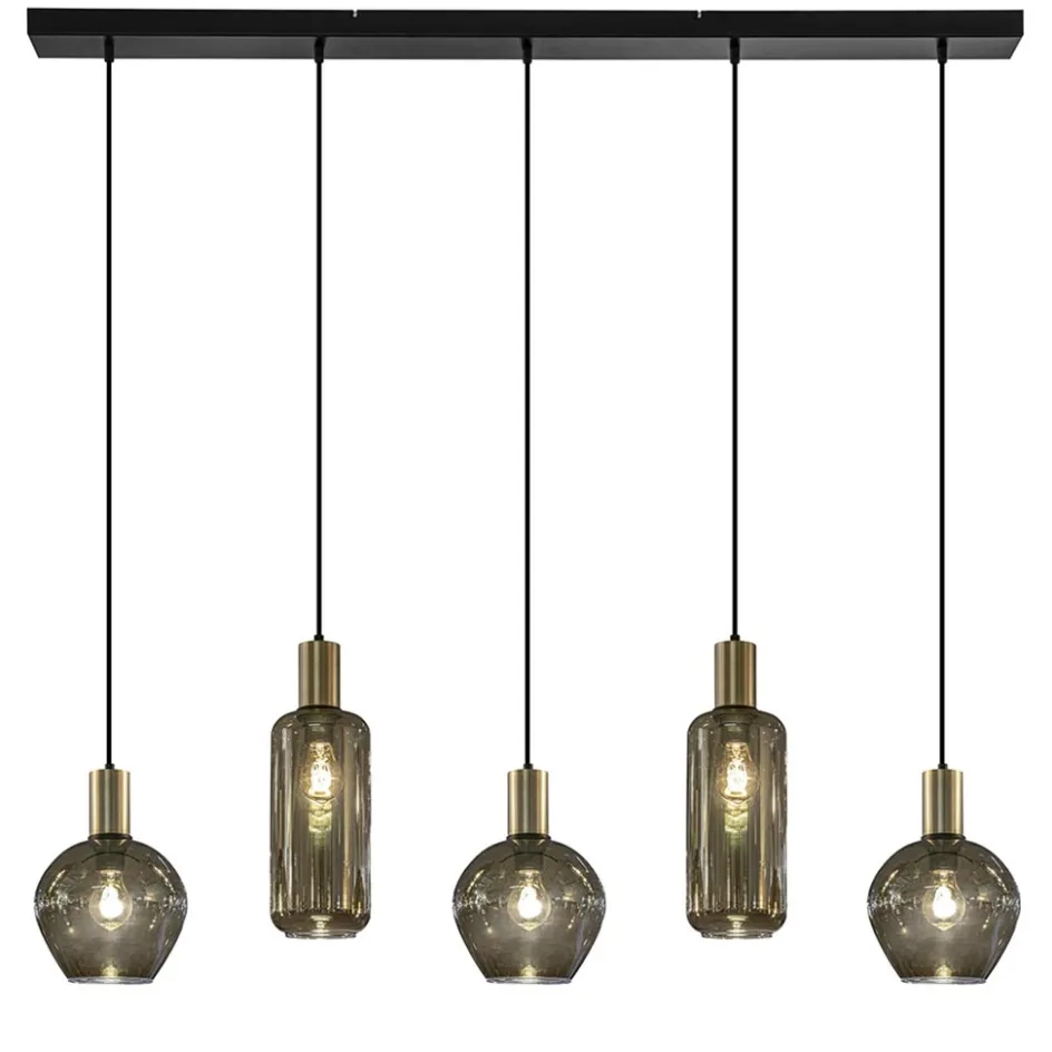 Chique 5-lichts hanglamp smoke glas met brons>Straluma Hot
