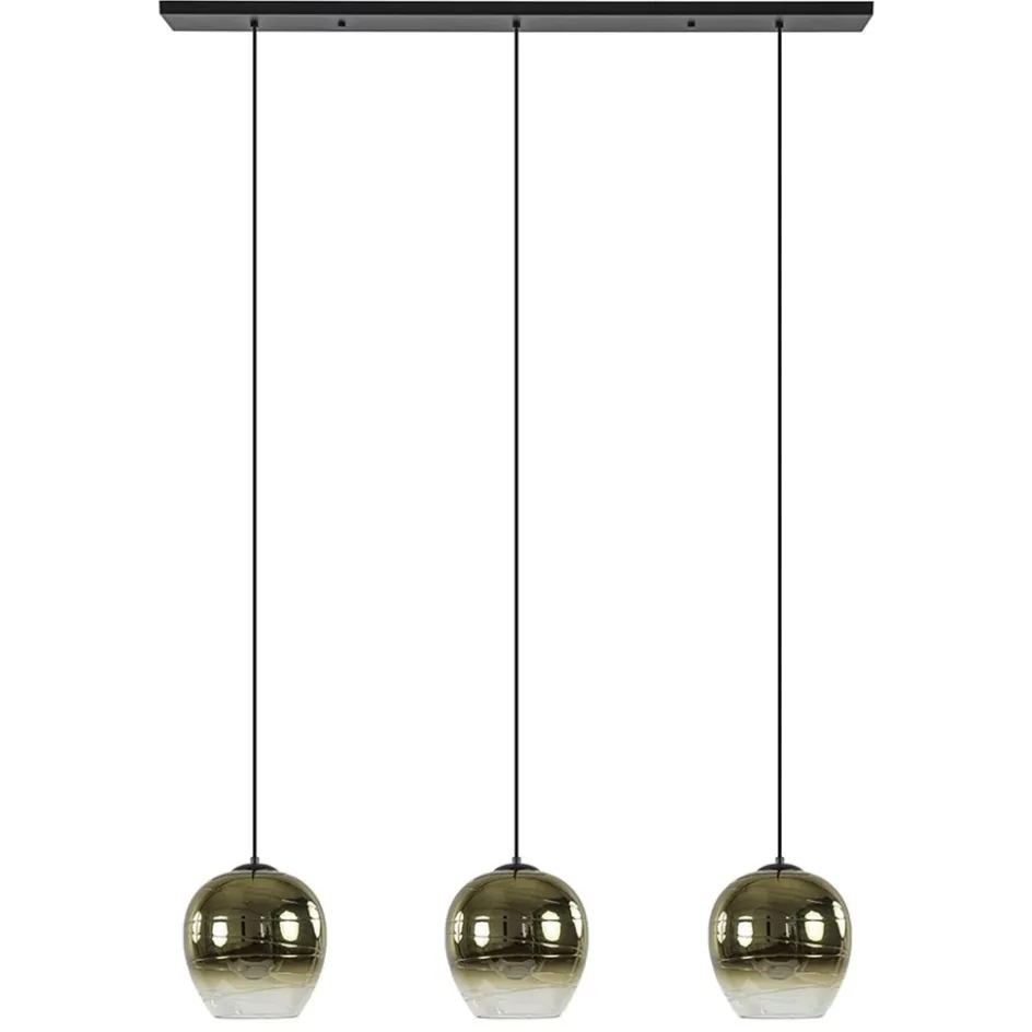Mooi te combineren in een strak klassiek, chic of trendy interieur. Deze 3-lichts hanglamp past perfect in diverse woonstijlen. De eettafelhanglamp is voorzien van drie glazen kappen met een bijzonder effect. Het glas is afgewerkt met een golden gradient, een verloop van goud naar helder glas. Dit geeft de hanglamp een luxe uitstraling en daarnaast ook een unieke look. De glazen kappen zijn naar wens op hoogte te hangen met een maximale hoogte van 175 cm. De lamp heeft een balk van 120 cm lang die is uitgevoerd in het mat zwart. Door middel van de trekontlasters is de lamp gemakkelijk in hoogte te verstellen. De 3-lichts chique hanglamp wordt geleverd zonder lichtbron en is dimbaar middels een externe dimmer (exclusief).