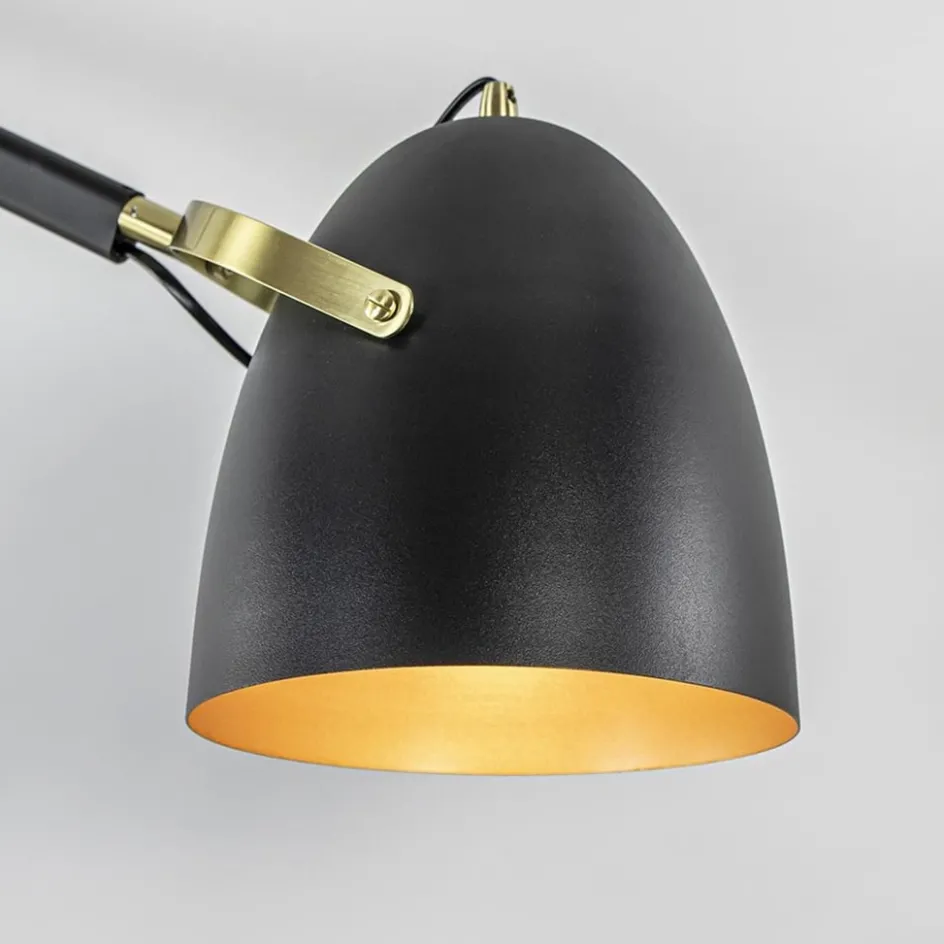 Super praktische hanglamp/plafondlamp met verstelbare arm, hierdoor kunt u deze lamp naar wens verstellen. Mooi design met zwart met goud accenten, dit geeft het geheel een mooie strakke warme uitstraling. De kap zorgt voor sfeer en een warme gloed. Deze verstelbare plafondlamp is bij de kap en plafondbevestiging draaibaar en kantelbaar, tussen de stangen zit ook een scharnier. Door deze mogelijkheden is de lamp in allerlei houdingen in te stellen. Ideaal voor boven de eettafel.