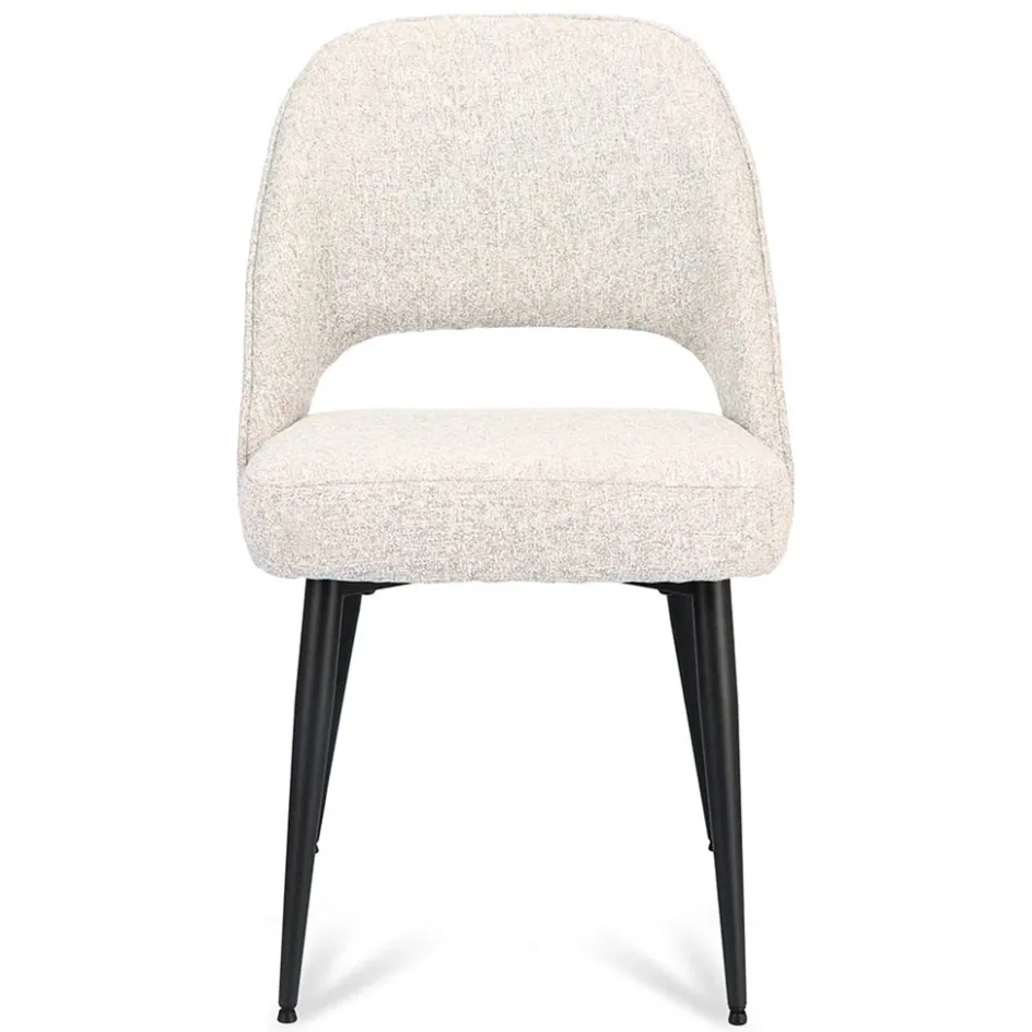 Deze stijlvolle eetkamerstoel is een mooie en comfortabele toevoeging aan de eetkamer. De stoel heeft een fijne stoffen zitting en wordt ondersteund door stevige metalen poten die zijn uitgevoerd in het zwart. Met deze stoel wordt dineren en borrelen een waar genot.