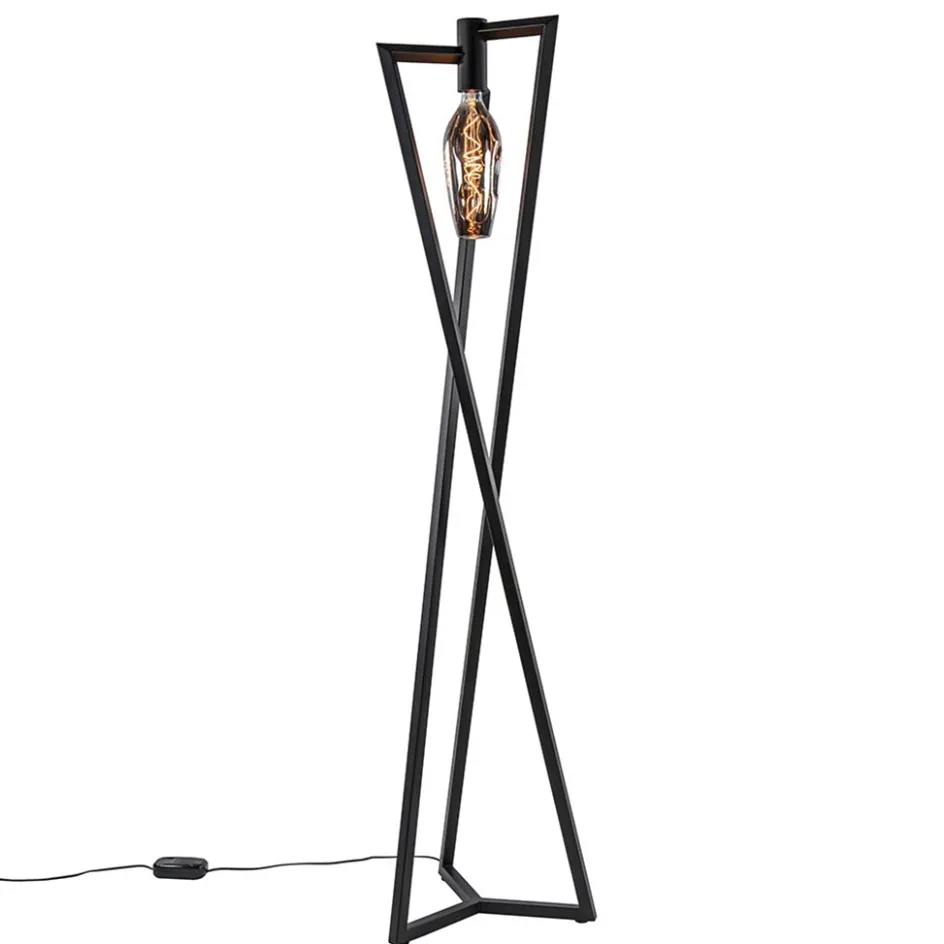 Strak van design en stoer van uiterlijk. Deze design vloerlamp is mooi te combineren in diverse woonstijlen. De staande lamp bestaat uit een metalen frame dat gedraaid in elkaar is gezet. Zo ontstaat er een speels ontwerp met een moderne strakke vormgeving. Het metalen frame heeft een dikte van 2,5 cm en is voorzien van een zwarte finish. De designlamp combineert prachtig met XL decoratieve lichtbronnen en is voorzien van een dimmer om snel de juiste sfeer te creëren. De vloerlamp heeft een zwart snoer met een lengte van 200 cm waarbij de dimmer zich bevindt op 50 cm van de lamp.