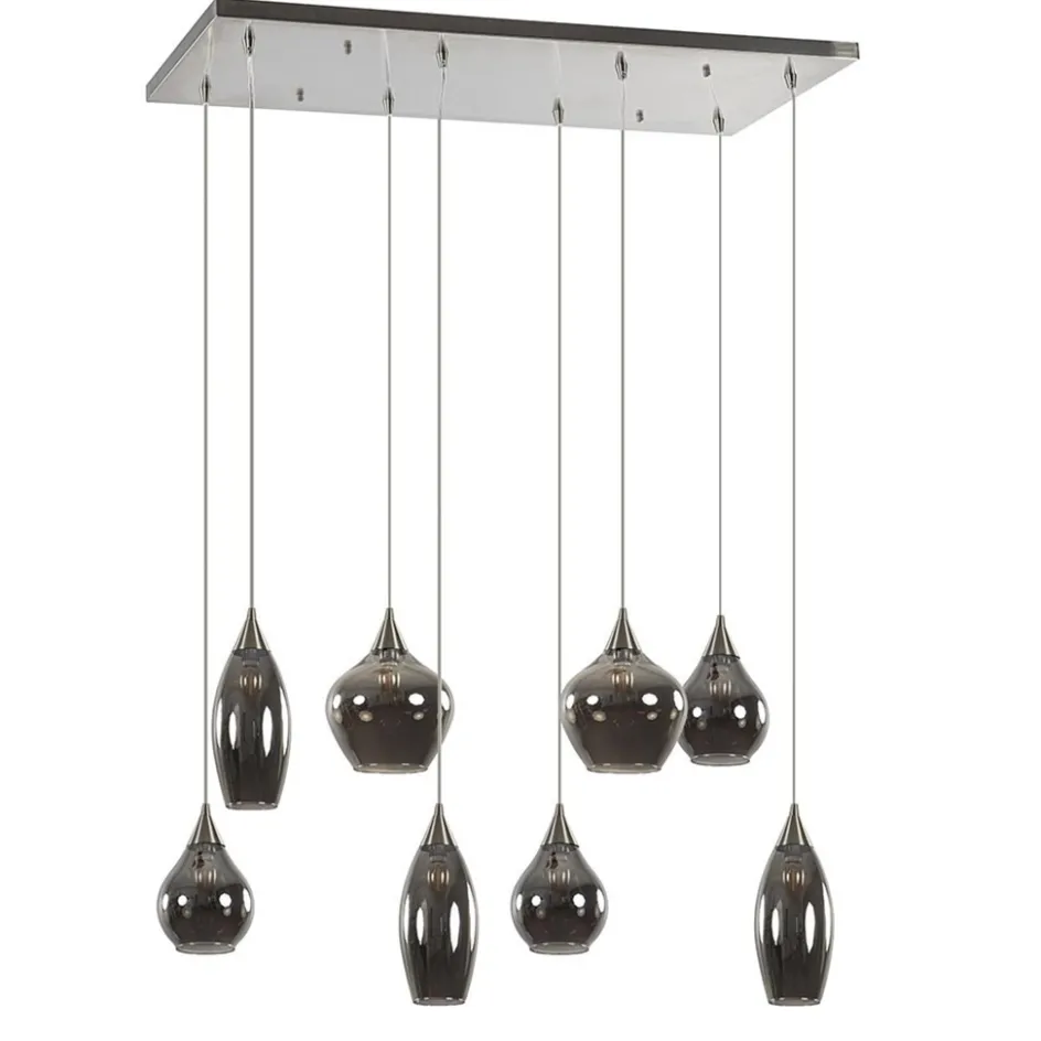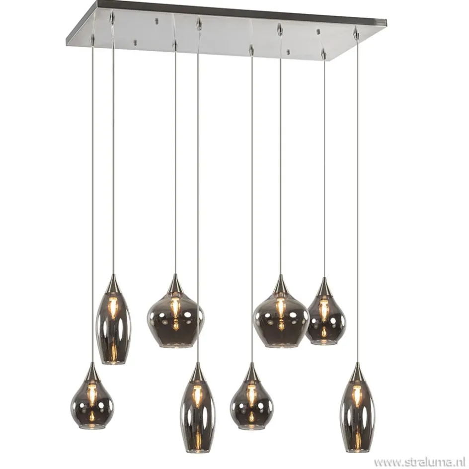 Eettafelhanglamp nikkel met smokey glas 8-lichts>Straluma Outlet