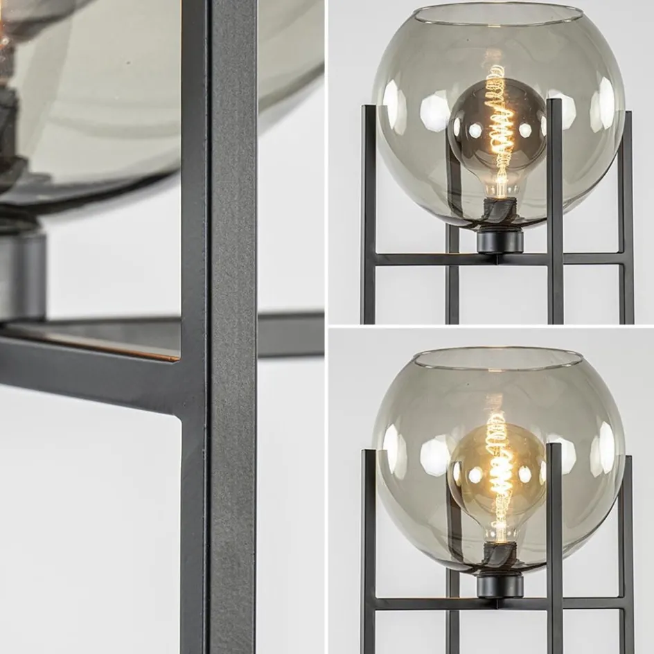 Frame vloerlamp mat zwart met smoke glazen bol>Straluma