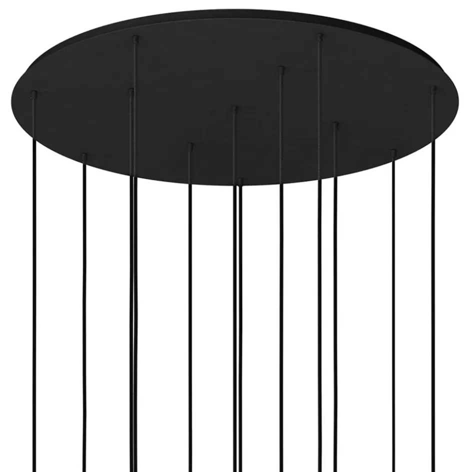 Deze prachtige hanglamp is een verrijking voor een vide of een ruimte met een hoog plafond. De hanglamp heeft een plafondplaat met een doorsnede van maar liefst 100 cm. Over de plaat zijn 12 lichtpunten verspreid die zijn onderverdeeld in 4 cilinders en 8 E27 fittingen, beide in het mat zwart. De cilinders en fittingen zijn naar wens op hoogte te hangen, met een maximale hoogte van 350 cm. De mat zwarte cilinders zorgen ervoor dat de ruimte onder de lamp goed wordt uitgelicht en de E27 fittingen zorgen met mooie decoratieve lichtbronnen voor diffuus licht. Zo komen zowel functie als sfeer bij elkaar en ontstaat er een prachtig schouwspel.