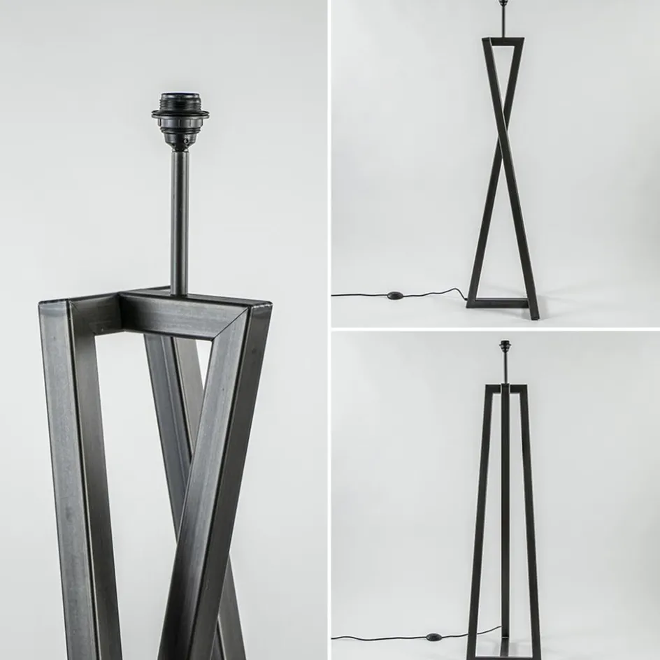 Een stoere robuuste vloerlamp met een hoog design gehalte. Deze vloerlamp is volledig vervaardigd van metaal en door echte ambacht gemaakt op Nederlandse bodem. Het metalen frame heeft een strakke afwerking en is niet voorzien van een finish. Hierdoor is het metaal en alle tekeningen zoals lasnaden goed zichtbaar. Dit maakt de lamp goed geschikt voor een industriële woonstijl. De staande lamp is voorzien van een zwart snoer met een lengte van 180 cm, de dimschakelaar bevindt zich op 45 cm in het snoer. De design lamp wordt geleverd zonder kap, zo kunt u de lamp zelf samenstellen zoals u wenst.