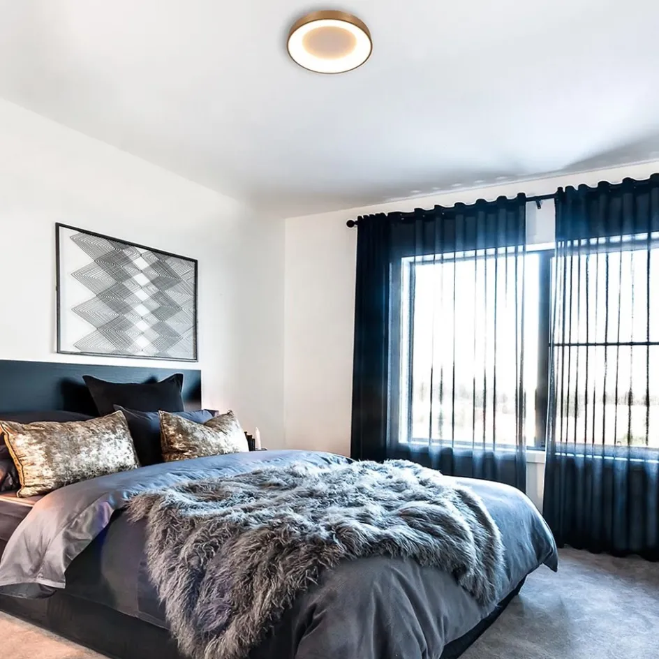 Deze moderne plafondlamp komt perfect tot z’n recht in een slaapkamer, keuken of hal. De ronde plafonnière is gemaakt van metaal en kunststof en is voorzien van geïntegreerd LED. Het LED geeft met 2700 Kelvin een sfeervolle warm witte verlichting en kan door de lichtopbrengst van 3600 lumen prima een hele kamer verlichten. De plafondlamp heeft een doorsnede van 48 cm en een hoogte van maar 9 cm, dit maakt de gouden plafondlamp prima geschikt voor een ruimte met een laag plafond. Middels en externe dimmer (exclusief) is de moderne plafondlamp naar wens te dimmen.