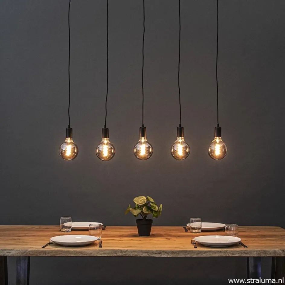 Hanglamp balk 110cm + 5x pendel zwart>Straluma Clearance