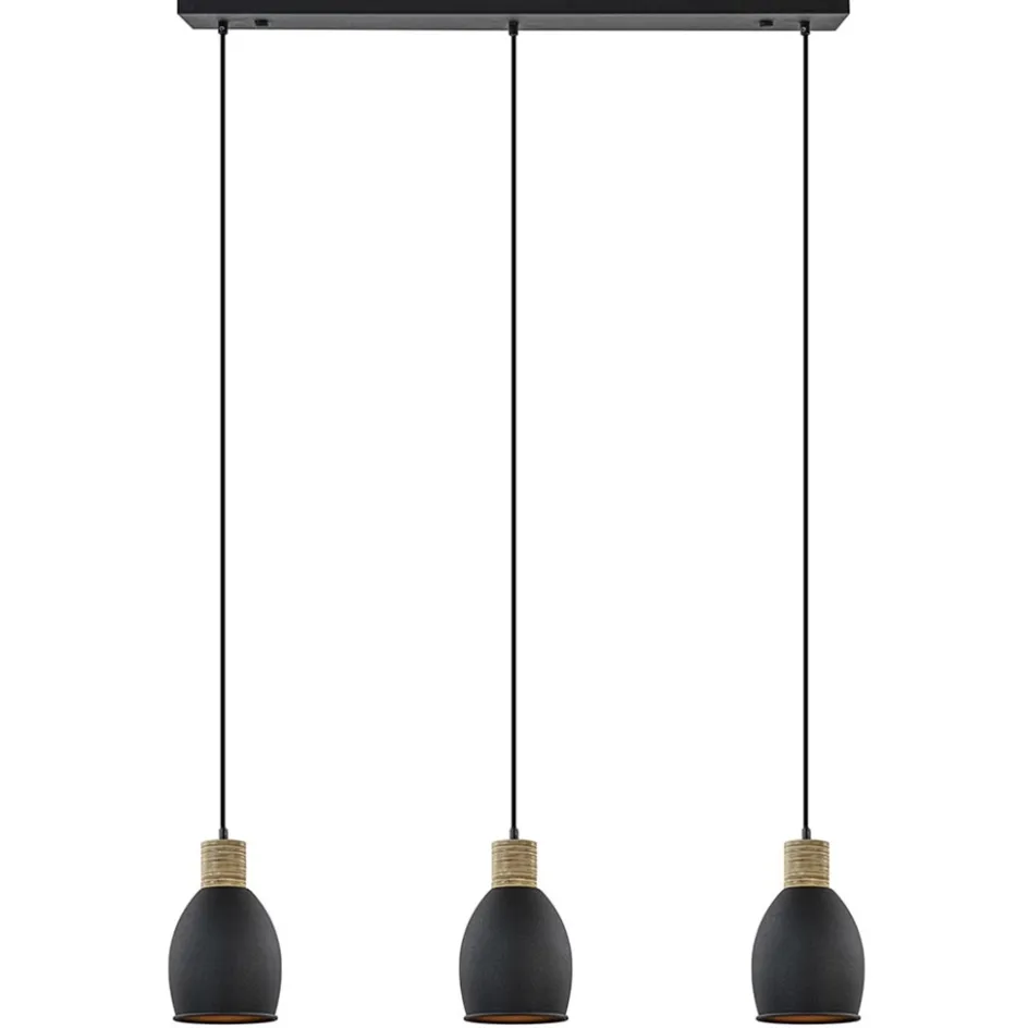 Industrieel landelijke hanglamp 3-lichts zwart met hout>Straluma Online