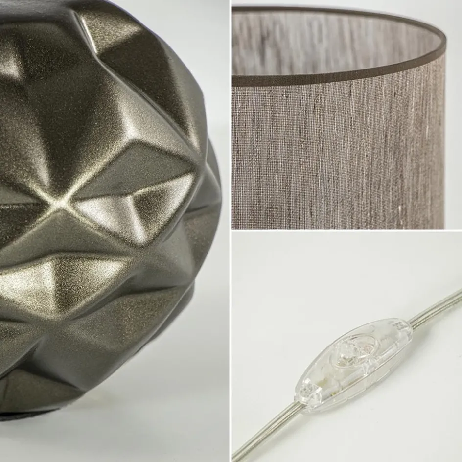 Sfeervol op een bijzettafel, dressoir of het nachtkastje. Deze keramieken tafellamp heeft door de brons-bruine uitvoering een chique klassieke look. Dit is mooi gecombineerd met een bruine kap met linnenlook. Door het kogelgewricht bij de fitting kunt u de kap gemakkelijk recht zetten op de voet. De ronde voet is voorzien van een transparant snoer met een lengte van 170 cm en een knipschakelaar op 55 cm. De schemerlamp wordt geleverd exclusief lichtbron (E27).