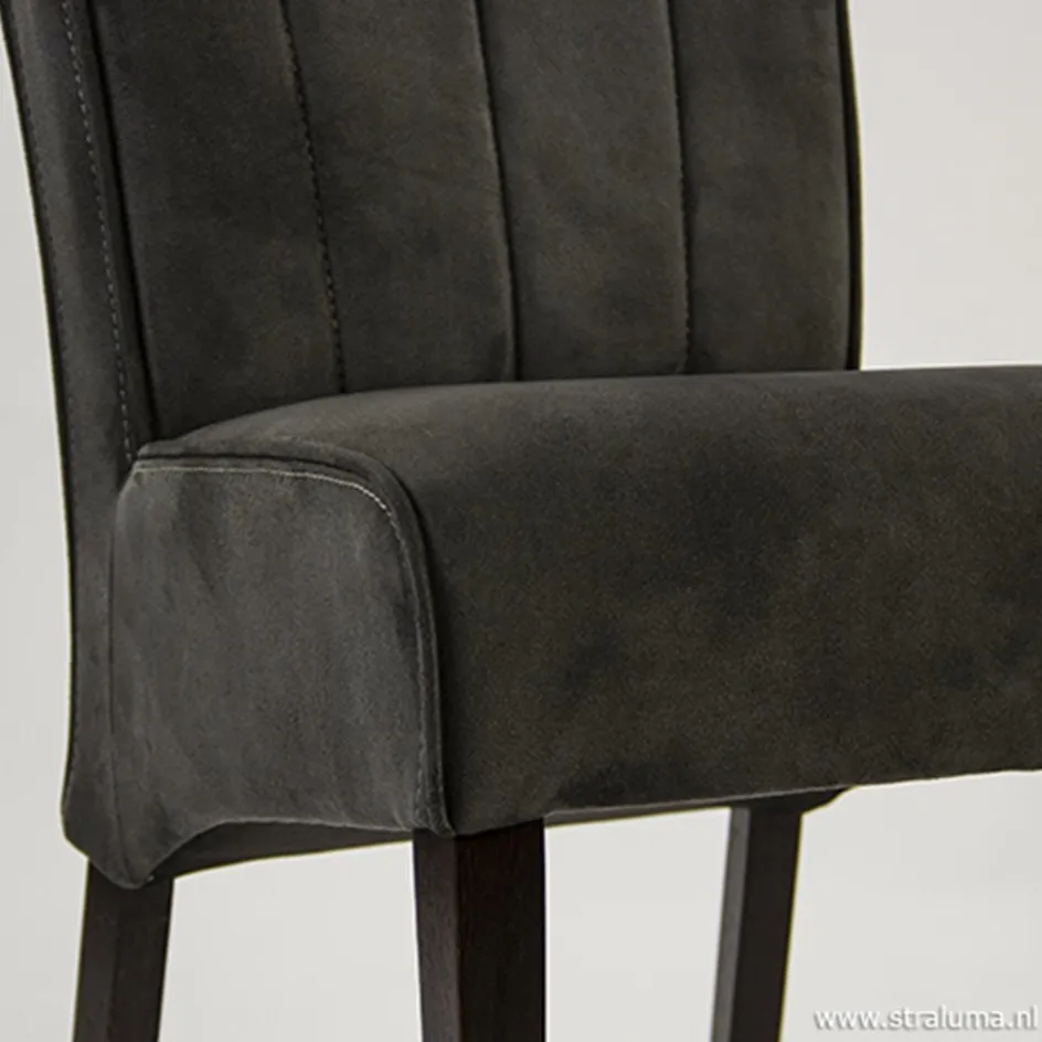 Deze luxe eetkamerstoel is een prachtig meubelstuk voor in uw klassieke of landelijke interieur. Door de hoge rug heeft de eettafelstoel een chique uitstraling. De stoel is uitgevoerd in stof en voorzien van verticale decoratieve stiknaden op de rugleuning, de donkergekleurde houten stoelpoten geven deze stoel een tijdloze elegantie. Combineer deze stoelen met een landelijke eettafel voor een evenwichtig en stijlvol geheel, zodat u lekker kan genieten van een heerlijk ontbijt in het weekend.