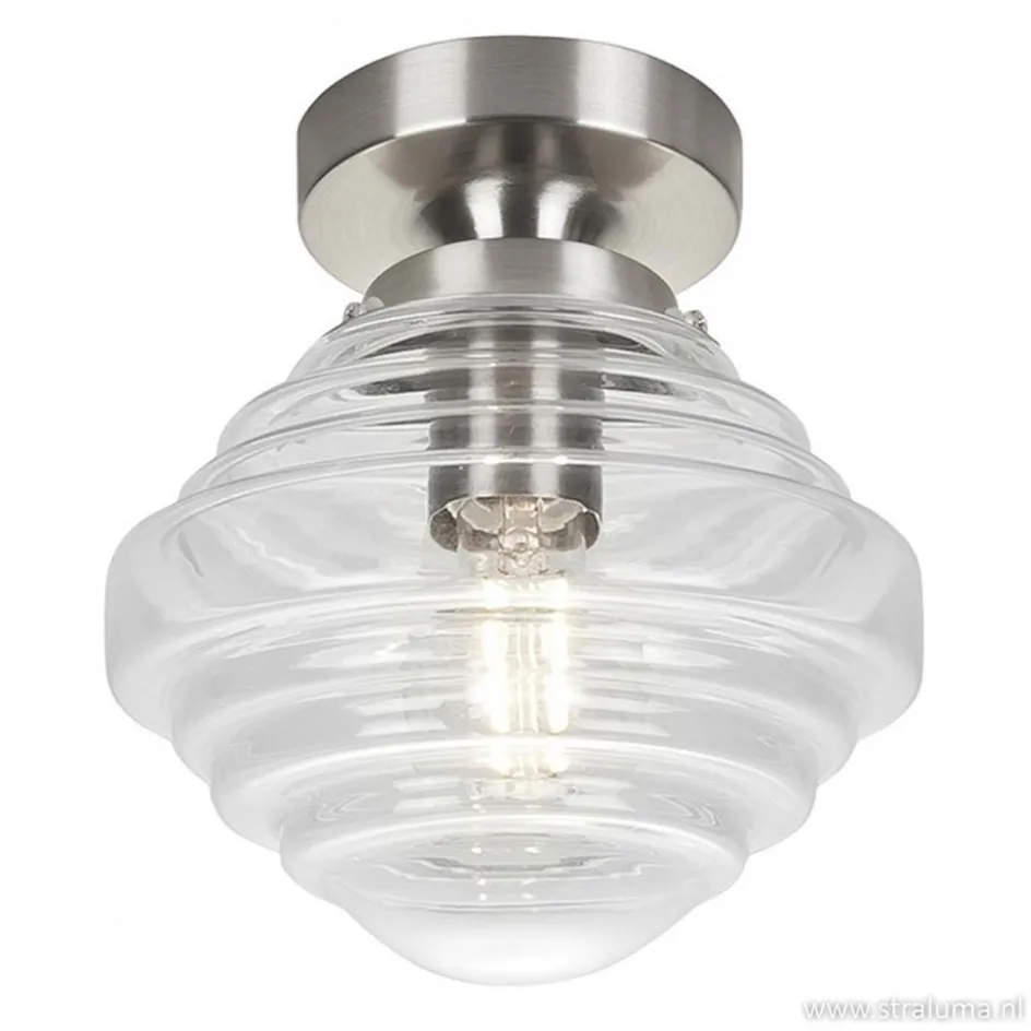 Kleine stalen plafondlamp glas helder>Straluma New