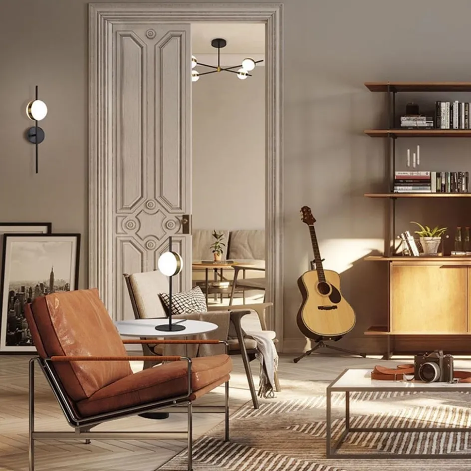 Een leuke toevoeging op een kast, nachtkastje of bijzettafel. Deze kleine tafellamp is voorzien van een kunststof bol waarin LED verlichting is verwerkt. De bol zorgt voor een diffuus licht dat mooi over de ruimte wordt verspreid. Met 600 lumen geeft de LED tafellamp dan ook behoorlijk wat licht. Het armatuur is zwart en als detail is er een gouden ring toegepast op de bol. De LED tafellamp is voorzien van een zwart snoer met een lengte van 200 cm. De schakelaar zit op 75 cm in het snoer.