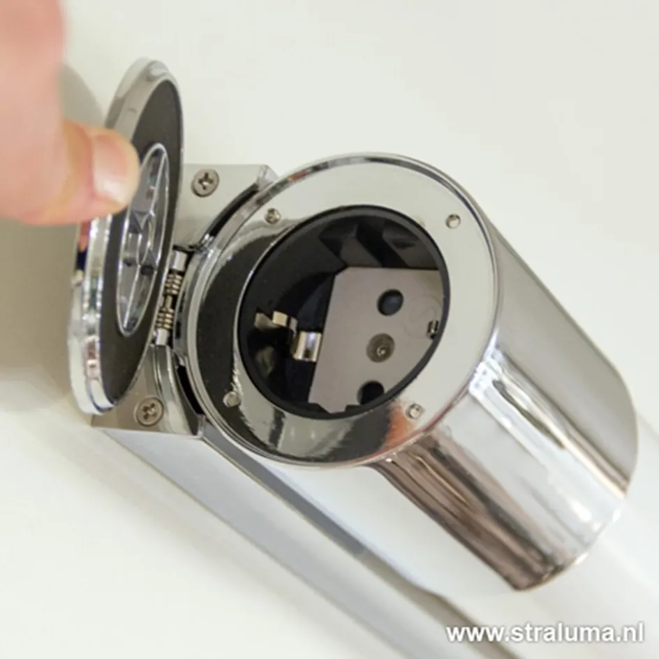 Deze moderne wandlamp is uitermate geschikt voor de keuken, badkamer of hobbyruimte. De LED wandlamp is te monteren aan de wand, waardoor uw werkplek altijd goed verlicht is. Door de chromen uiteindes en de IP44 keuring past hij uitstekend in de badkamer boven een spiegel of bij de chromen kranen. Een leuke bijkomstigheid is de contactdoos aan één van de uiteindes van de badkamerlamp. U kunt deze op één van de foto’s zien.