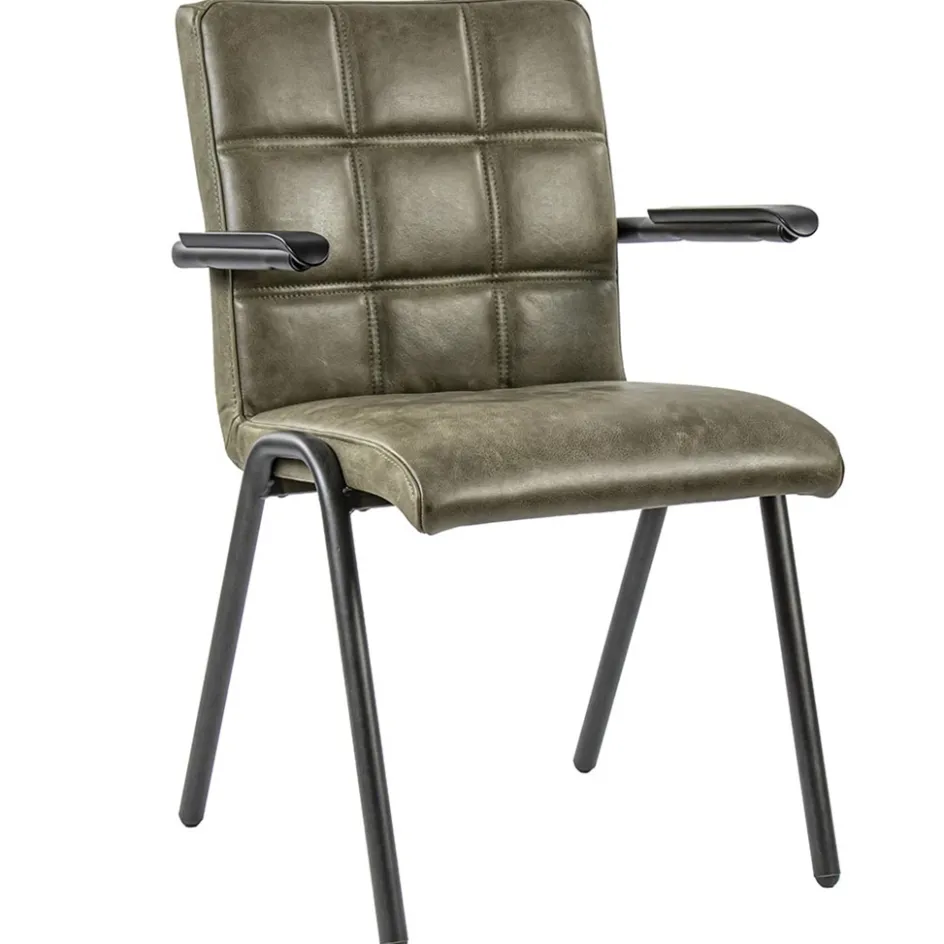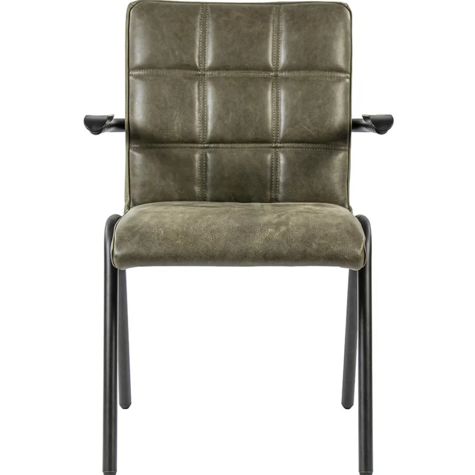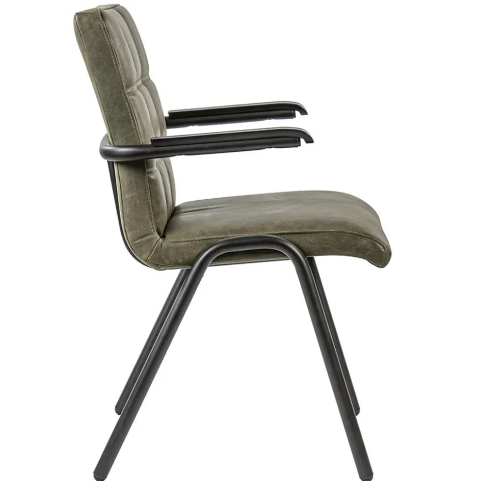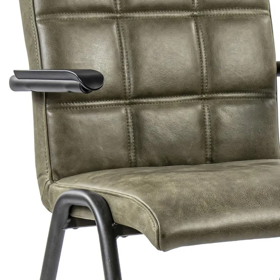 Lederen armstoel olijf groen met zwart metalen pootjes>Straluma New