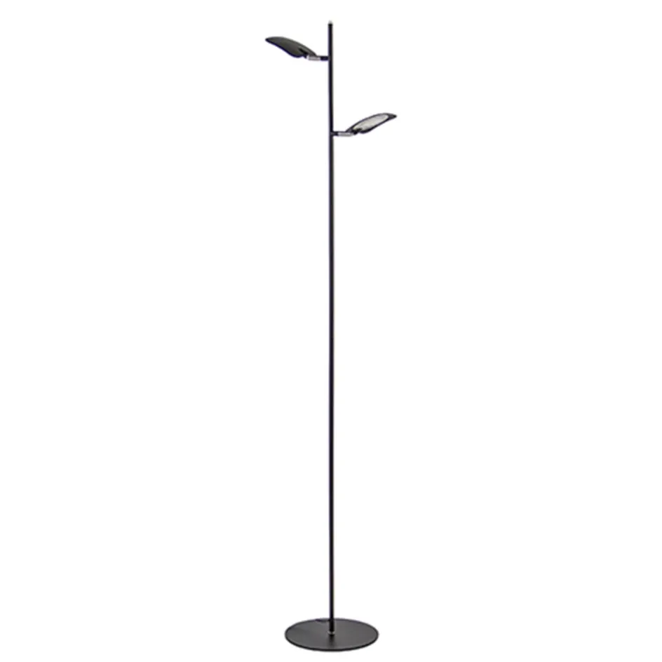 Deze 2- lichts lamp is de ideale vloerlamp. De moderne staande lamp werkt prima als sfeerverlichting, maar doordat de kapjes zijn te verstellen kan de zwarte LED lamp ook perfect dienen als leeslamp. De kapjes zijn zowel te draaien als te kantelen zodat u het licht altijd naar de gewenste kant kunt richten. Daarnaast is de LED verlichting ook te dimmen met de touchdimmer bovenop de stang, zo is voor iedere situatie de perfecte sfeerverlichting te creëren.