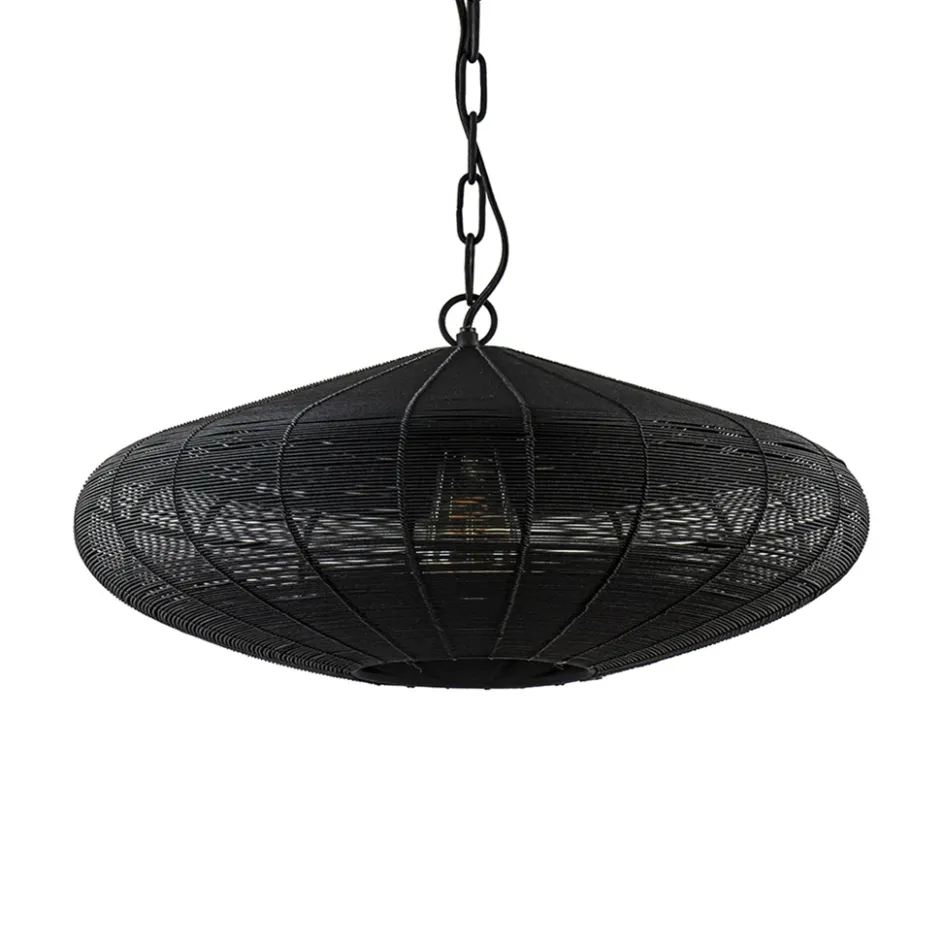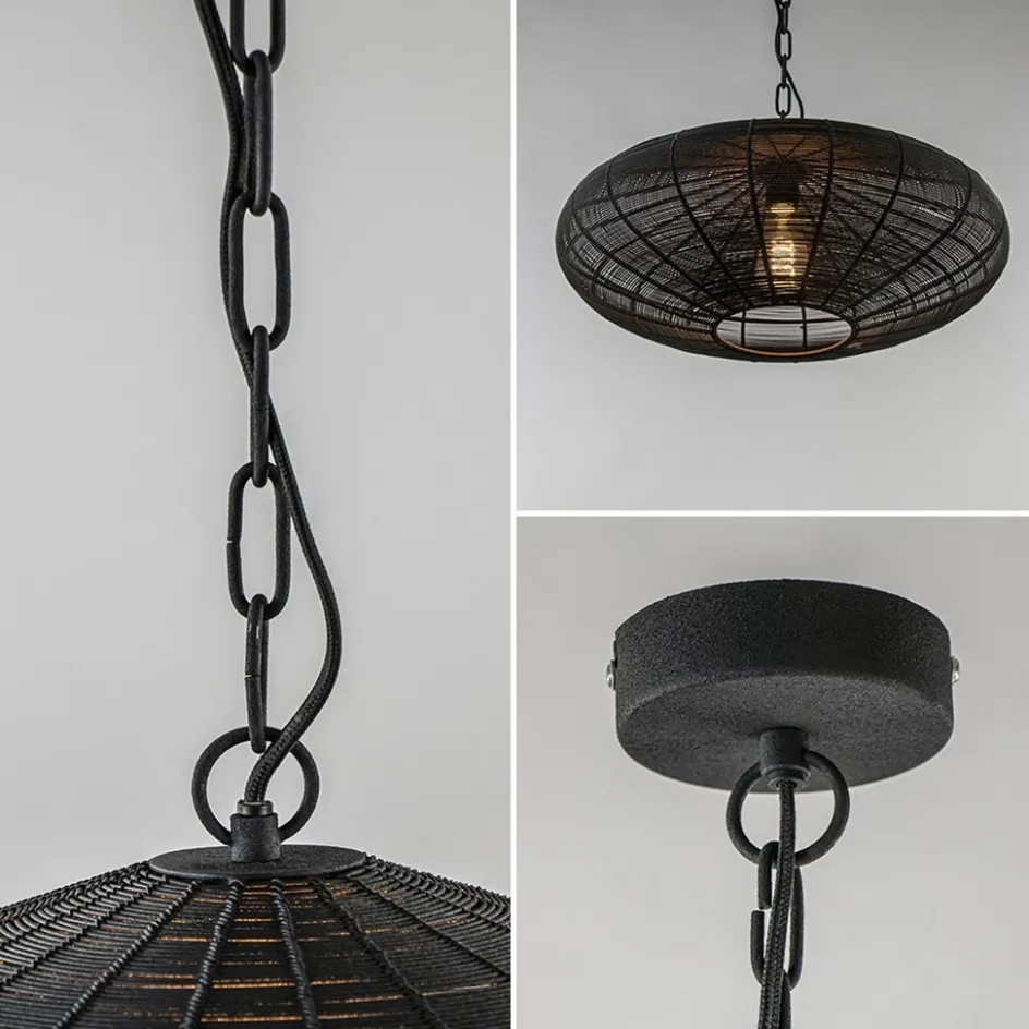Hanglamp Bahoto van Light and Living is een stoere draadlamp met een robuuste afwerking. De zwarte hanglamp heeft een extra matte afwerking wat de lamp een industriële en tevens chique look geeft. De ronde kap heeft een doorsnede van 51 cm en hangt aan een stevige ketting en plafondplaat. Bahoto heeft een maximale hoogte van 110 cm en is naar wens in te korten door er schakels tussenuit te halen. De mat zwarte draadlamp is dimbaar middels een externe dimmer (exclusief) en wordt geleverd exclusief lichtbron. Een leuke toevoeging boven een eettafel of salontafel.