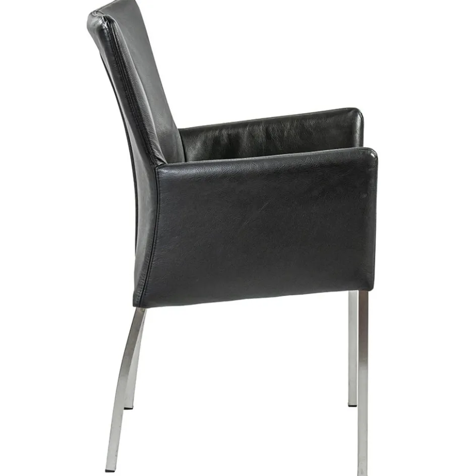Moderne armstoel zwart leder met RVS poten>Straluma Outlet