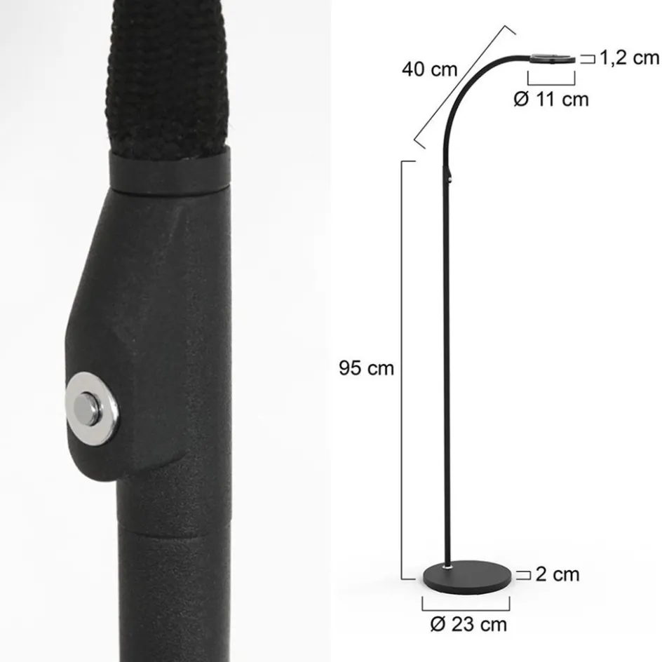 Een ideale vloerlamp voor zowel functioneel als sfeerlicht. Deze moderne leeslamp is van meerdere gemakken voorzien. Naast het strakke design heeft de leeslamp een flexibele arm zodat u de kap naar wens kunt verstellen. Deze is verder voorzien van LED verlichting welke dimbaar is middels de pushdimmer op het armatuur. De verlichting is zowel in intensiteit als kleur te dimmen. Zo kunt u gemakkelijk schakelen tussen licht om bij te lezen of een sfeervol licht voor bij een borrel. De mat zwarte LED leeslamp heeft een zwart snoer met een lengte van 180 cm.