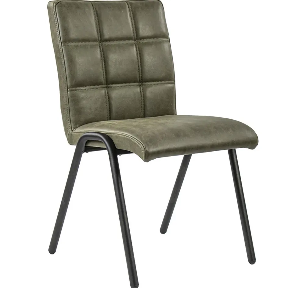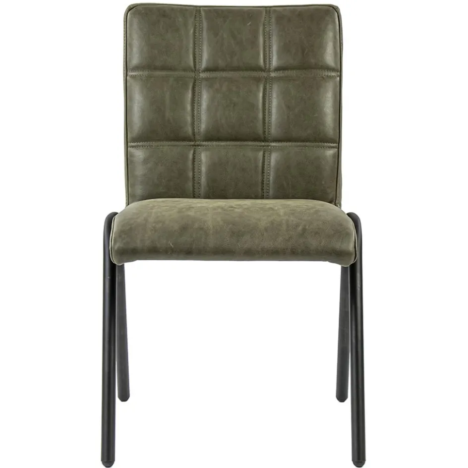 Olijf groene eettafelstoel leder met zwarte pootjes>Straluma Hot