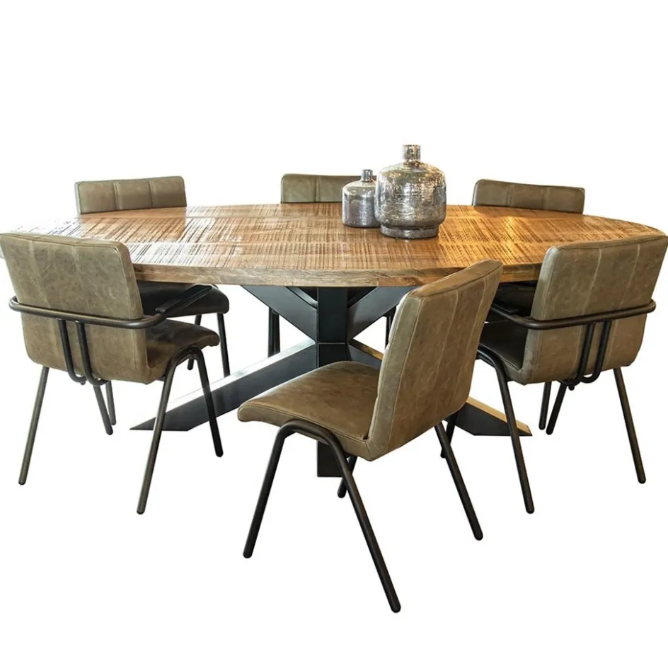 Mooi bij een ovale tafel, maar ook prima toepasbaar bij een rechthoekige of ronde tafel. Deze eetkamerstoel heeft een stoere robuuste uitstraling. De zitting en rugleuning zijn volledig van leder en de pootjes en het frame zijn van metaal met een zwarte afwerking. De sticksels in de rugleuning geven de stoel een landelijke look. De stoel is ook mooi te combineren met het model met armleuning.