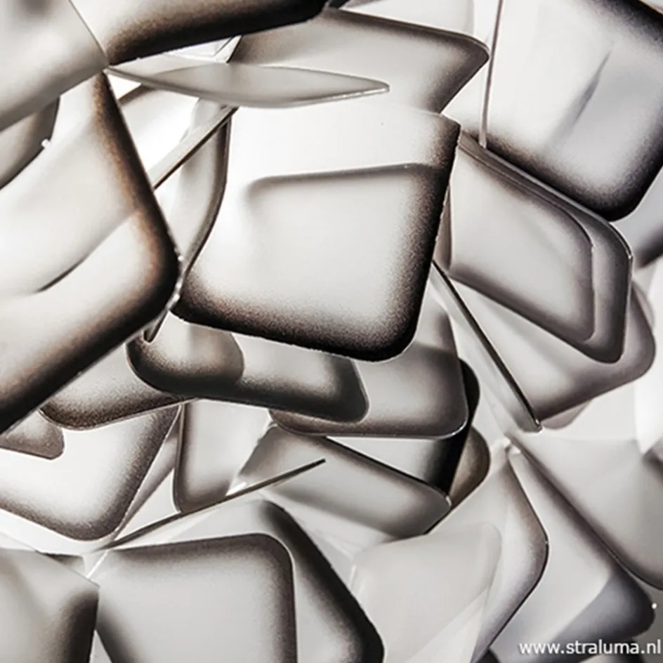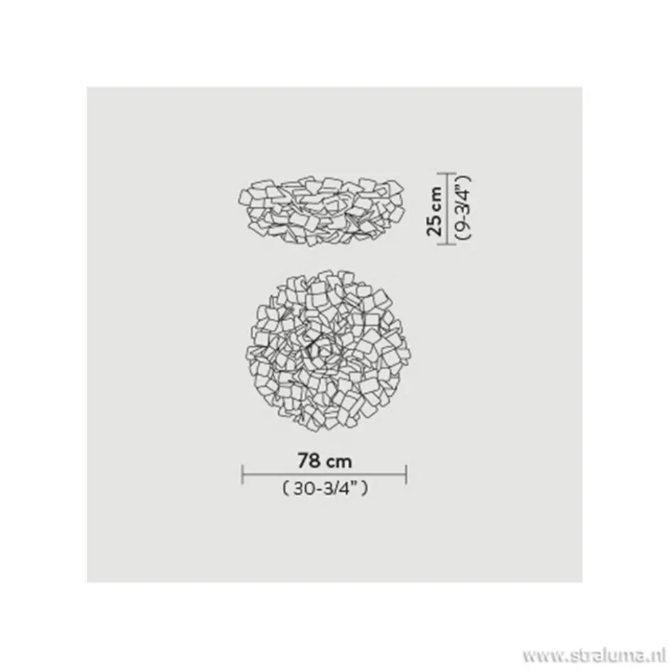 Een moderne plafondlamp die gemaakt is uit verschillende vormen die samen de perfecte balans vinden tussen reflecties en transparantie. De plafonnière is dan ook geïnspireerd op een wolk die de eerste stralen van de ochtend zon opvangt. De Clizia is een lamp die vanwege z’n grootte mooi opvalt en een sfeervolle verlichting creëert.
