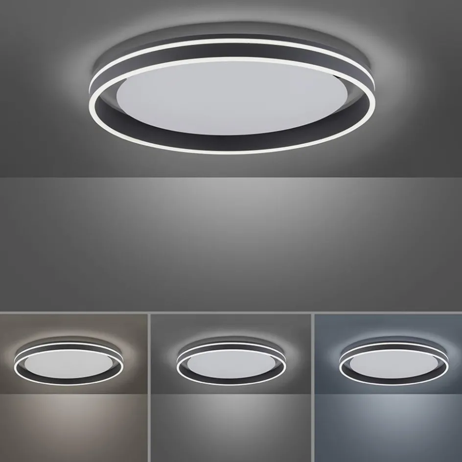 Een mooi strak design met een knipoog naar de klassieke plafonnière. Deze moderne smart plafondlamp is uitgevoerd in het antraciet en gecombineerd met LED. De LED strips in de ring zorgen voor een diffuus licht zowel naar beneden als opzij. De lamp is zowel te dimmen in lichtsterke als in lichtwarmte. De lamp is te bedienen met de bijgeleverde afstandsbediening als met de app. De plafondlamp kan geïntegreerd worden in bestaande smart systemen met een Zigbee standaard.