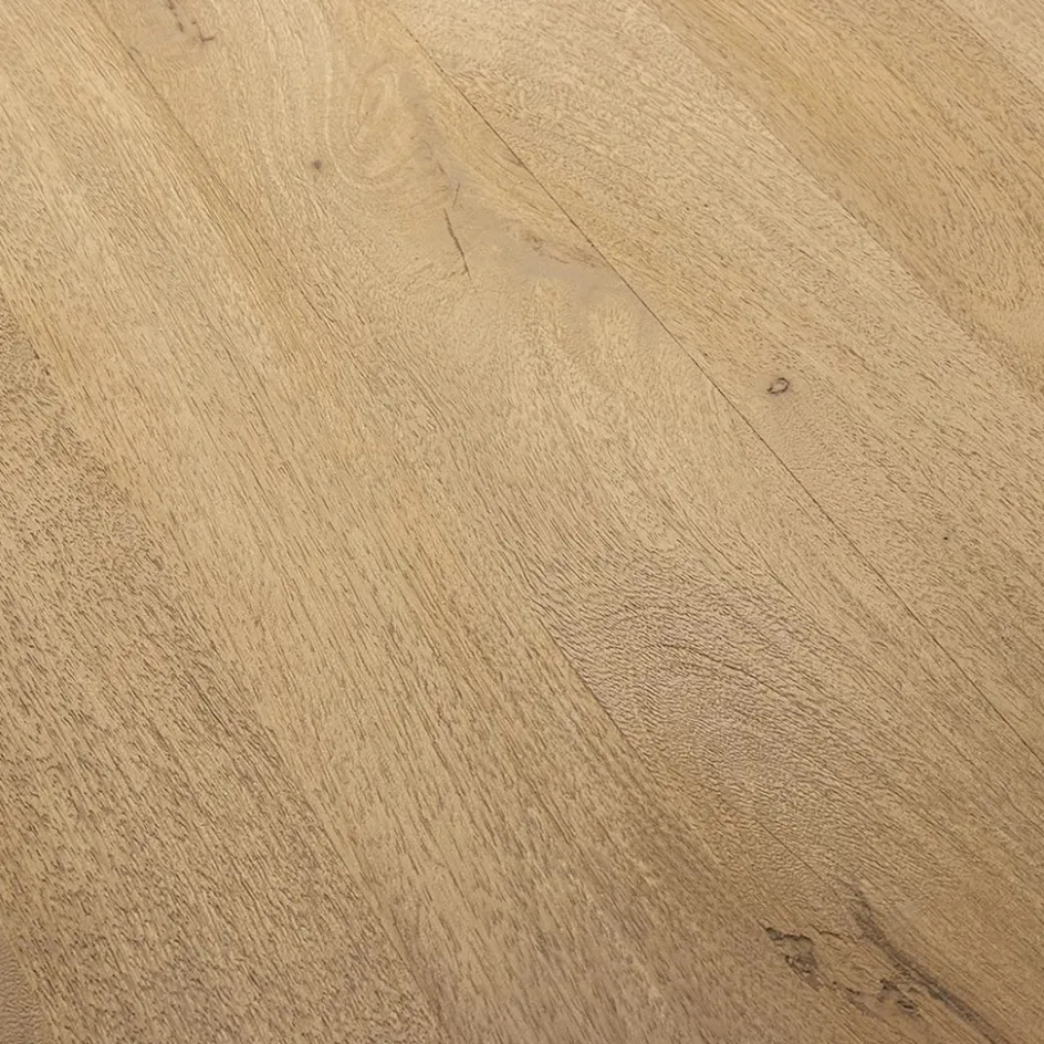 Een stoere rechthoekige eettafel die gemaakt is van Mangohout. Dit is echter bijna niet te zien omdat het hout gebleekt en licht geborsteld is. Dit zorgt ervoor dat het hout een totaal andere look dan normaal mangohout krijgt. Het mangohout is als laatste afgewerkt met een matte blanke lak. Hierdoor laat het geen vlekken door en is het makkelijk met een vochtige doek schoon te maken. De robuuste tafel heeft een afmeting van 220×100 cm is biedt genoeg ruimte voor 6 personen